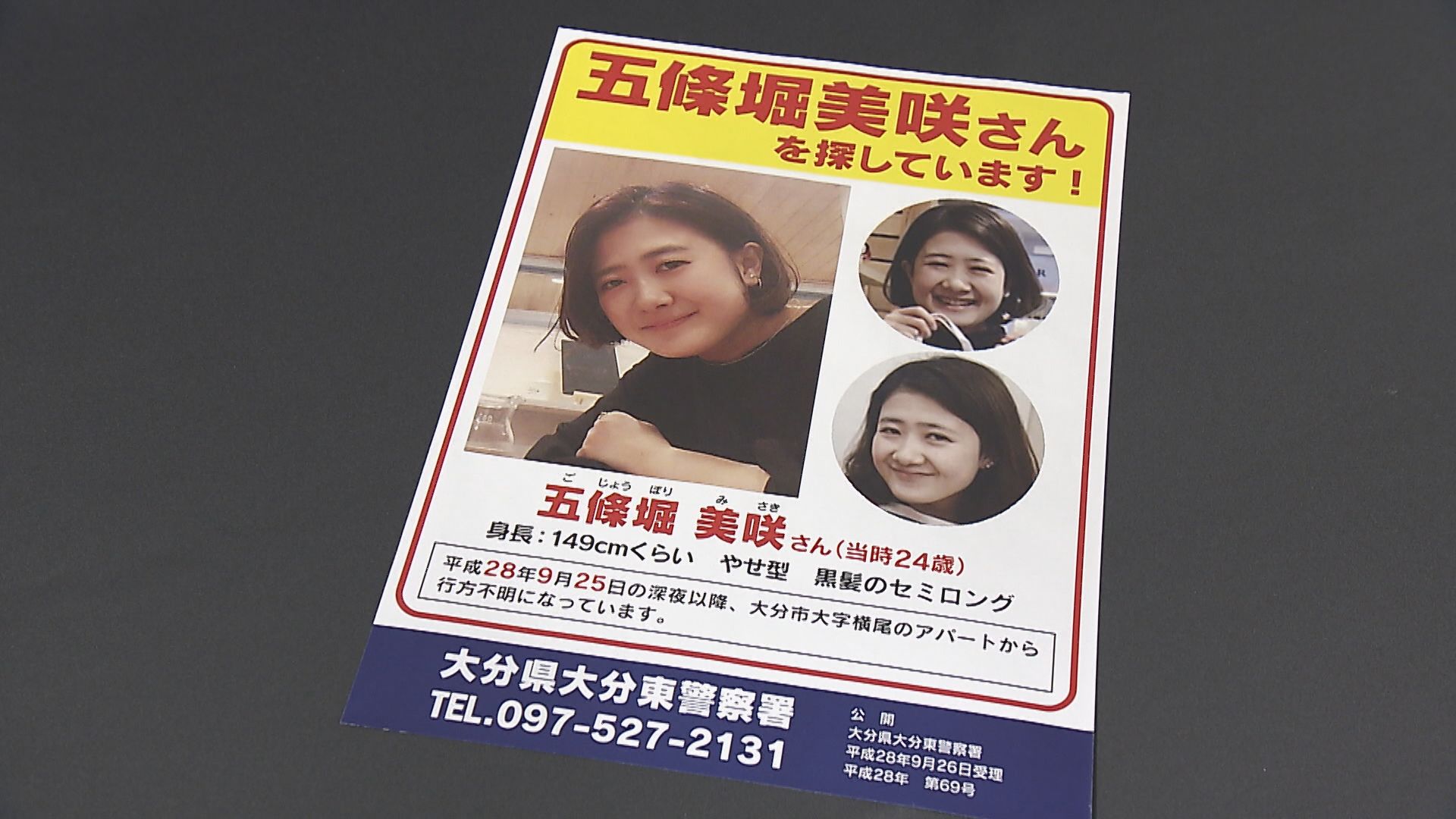 五條堀美咲さん行方不明から9年 父親「長かったようであっという間」警察と情報提供呼び掛け 大分