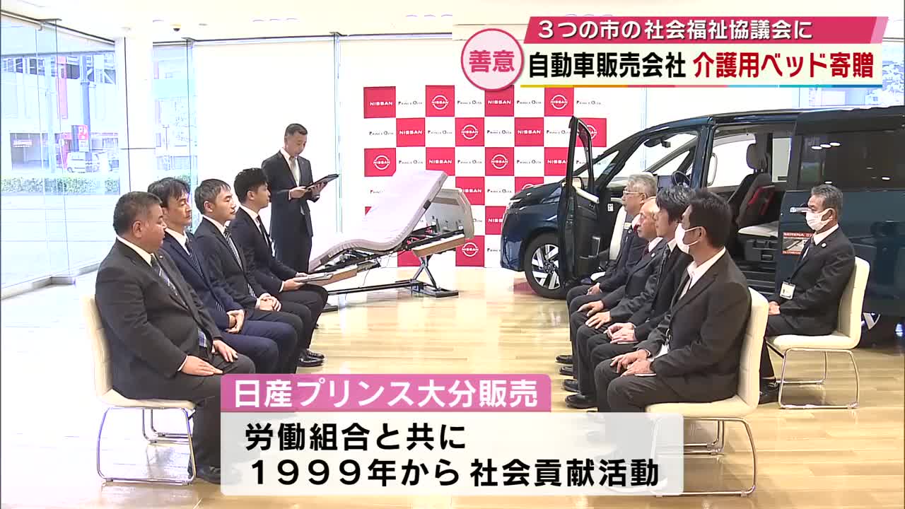 福祉の現場で役立てて 自動車販売会社などが介護用ベッド寄贈 1999年から続く社会貢献活動 大分