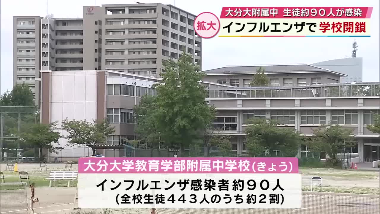 全校生徒2割ほどの約90人の感染判明 大分大学附属中学校インフルエンザで学校閉鎖