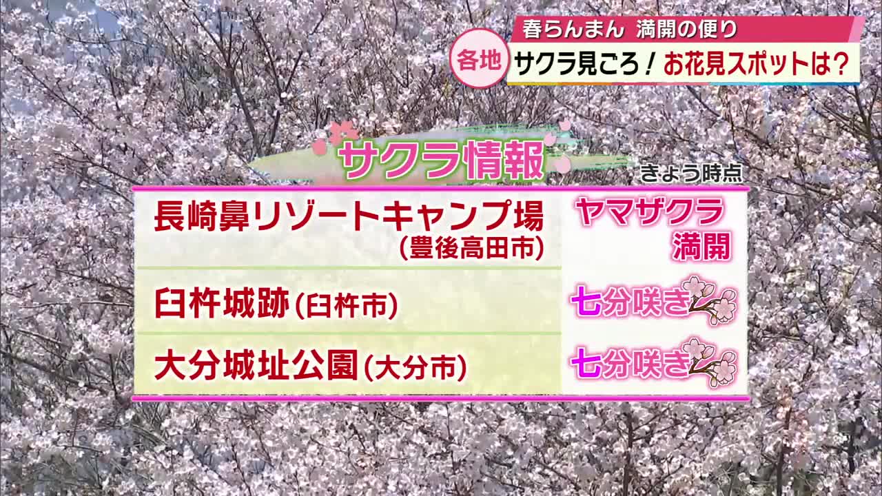 県内各地で桜見ごろ ライトアップやお花見スポットの開花状況は?「感動した」「めちゃくちゃ壮大」大分