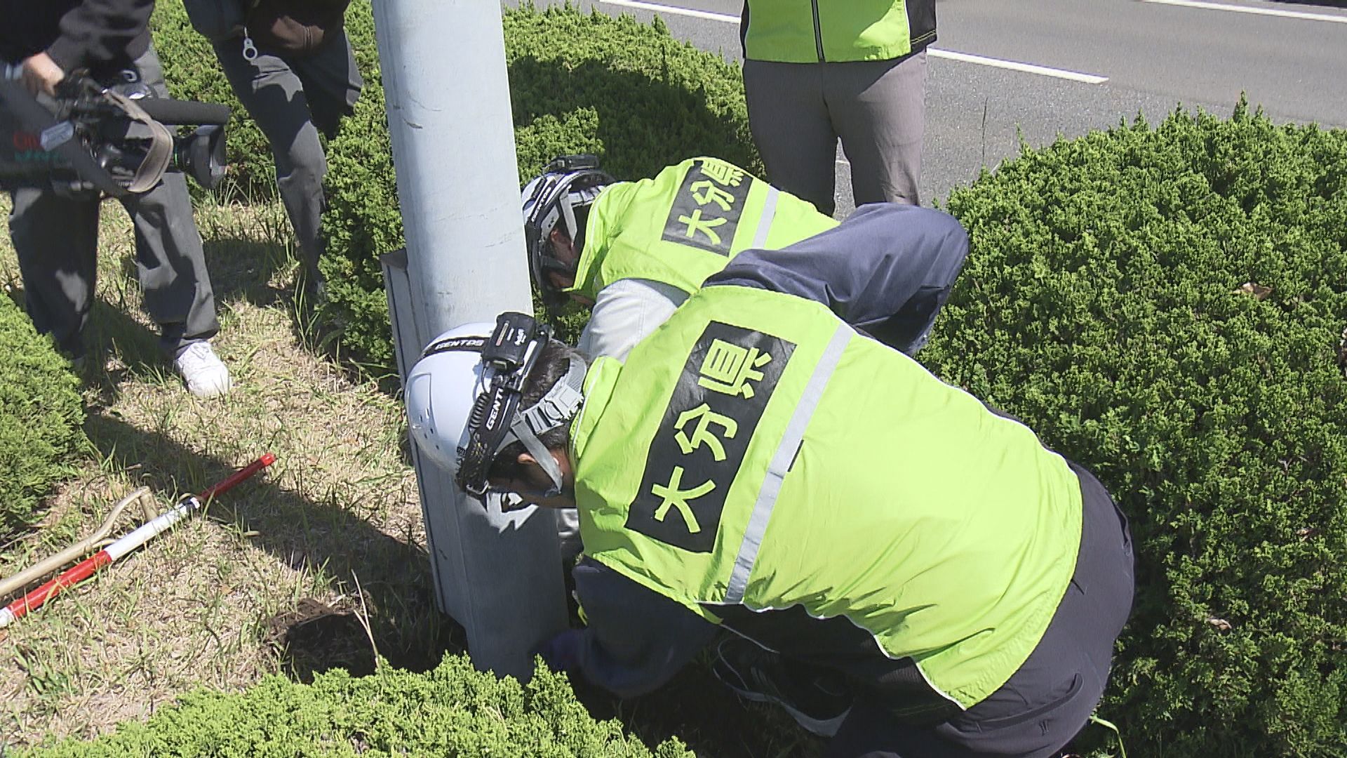 国道で街灯が突然倒れたことを受け 県が緊急点検 根元のさびの状態など確認 大分