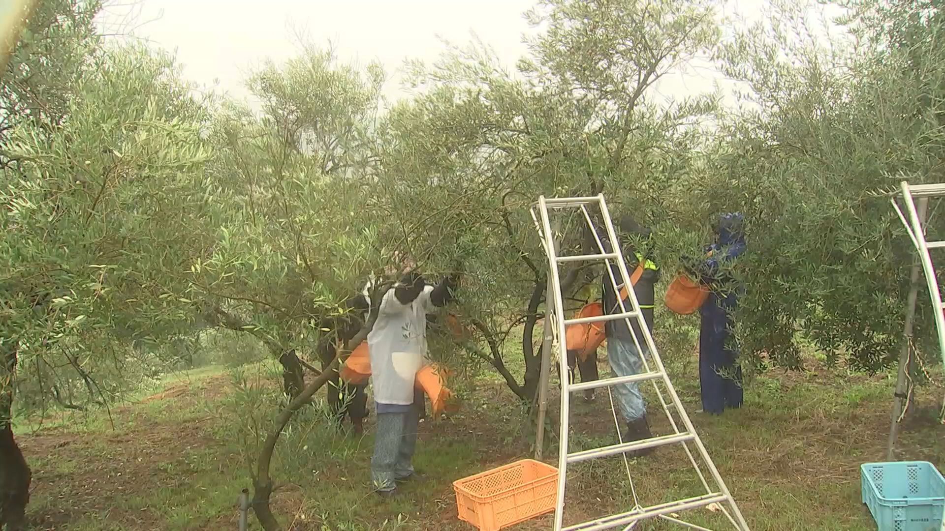こちらのオリーブ農園では、38ヘクタールの広大な敷地で、およそ4500本を栽培していて、3日からオリーブオイル用の品種の収穫が始まりました。
