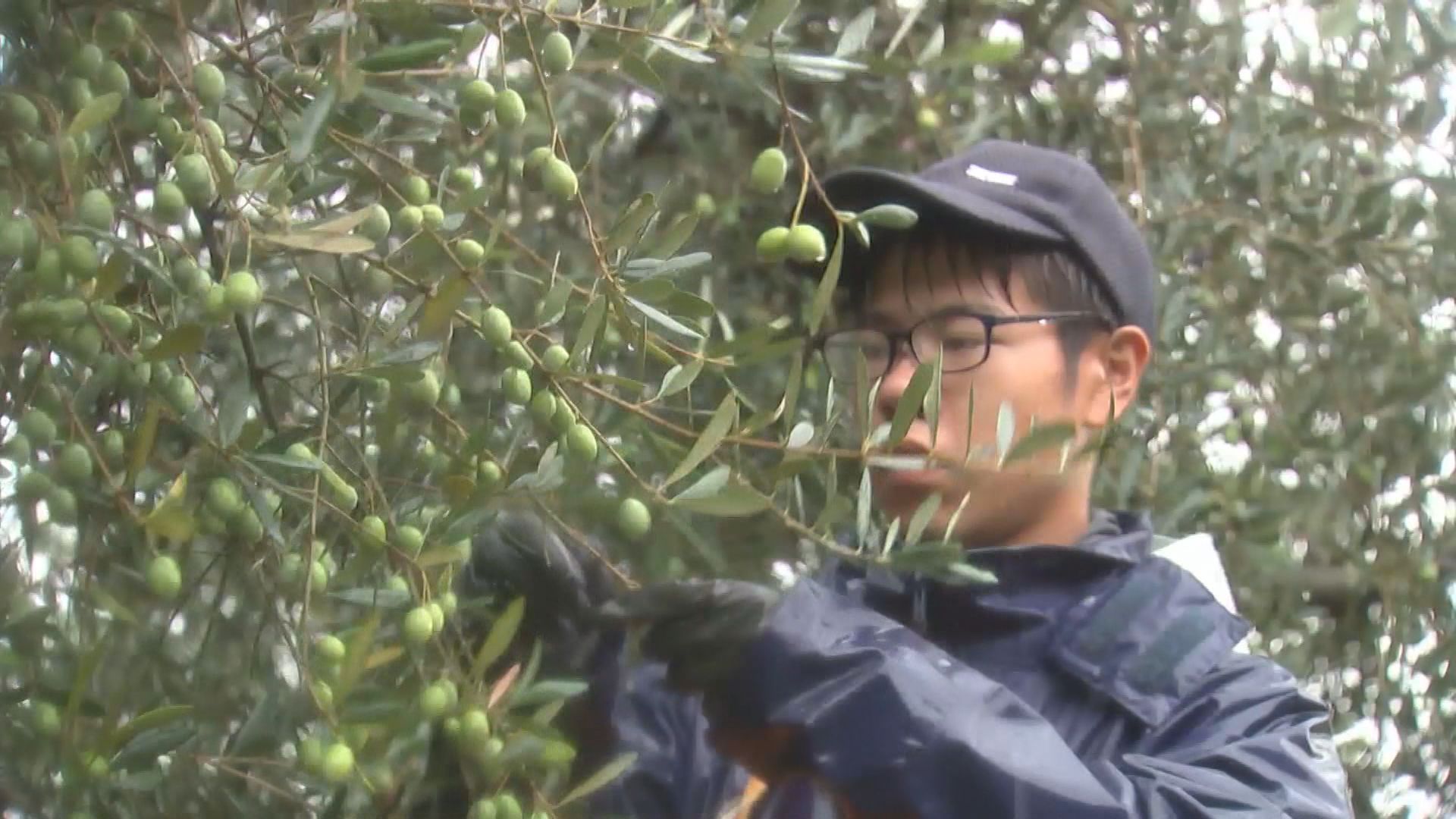 朝は、直径2センチほどに育ったオリーブの実を、一つ一つ職員が手作業で摘み取っていました。