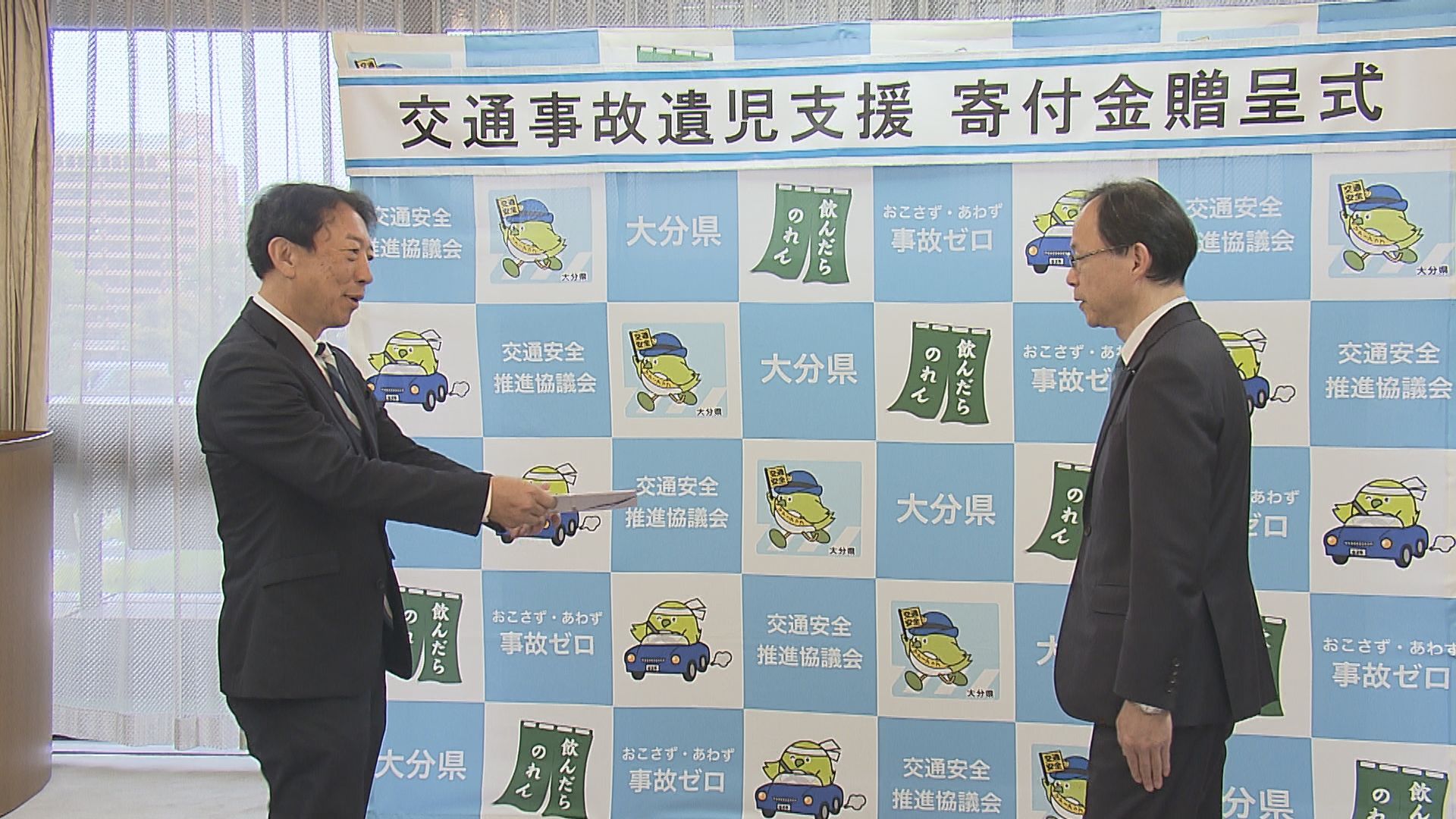 交通事故で保護者を亡くした子供たちを支援しようと、大分県自動車販売店協会が県に寄付金を贈りました。