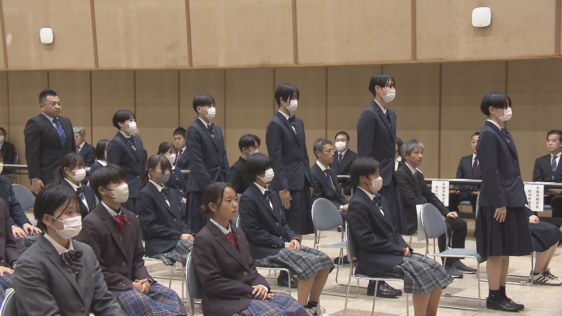 会では始めに県高校体育連盟の佐保宏二会長が選手たちを激励したあと、柳ヶ浦高校・女子サッカー部の田淵聖那主将が決意表明しました。