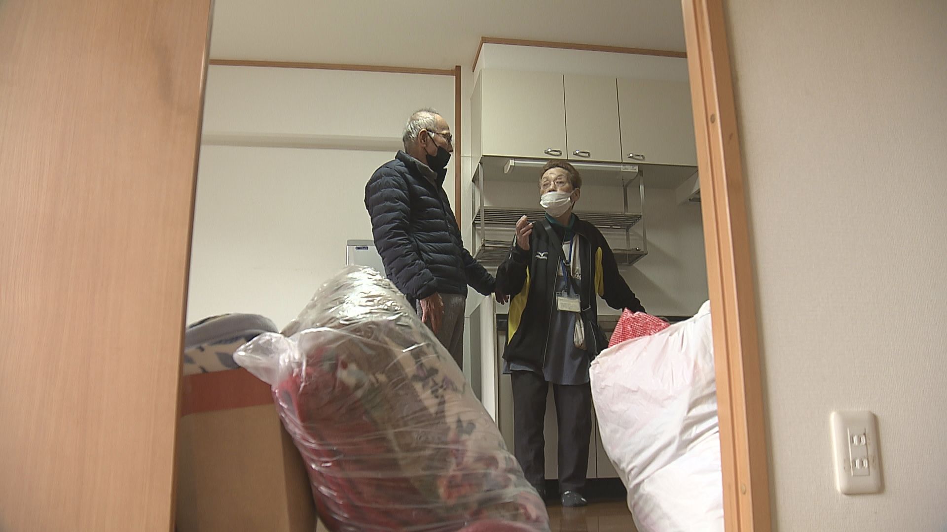 山口さん家族が住むことになった部屋は2DKで家電などが用意されていました。新たな生活に向け布団なども運びこんでいた山口さん夫婦。