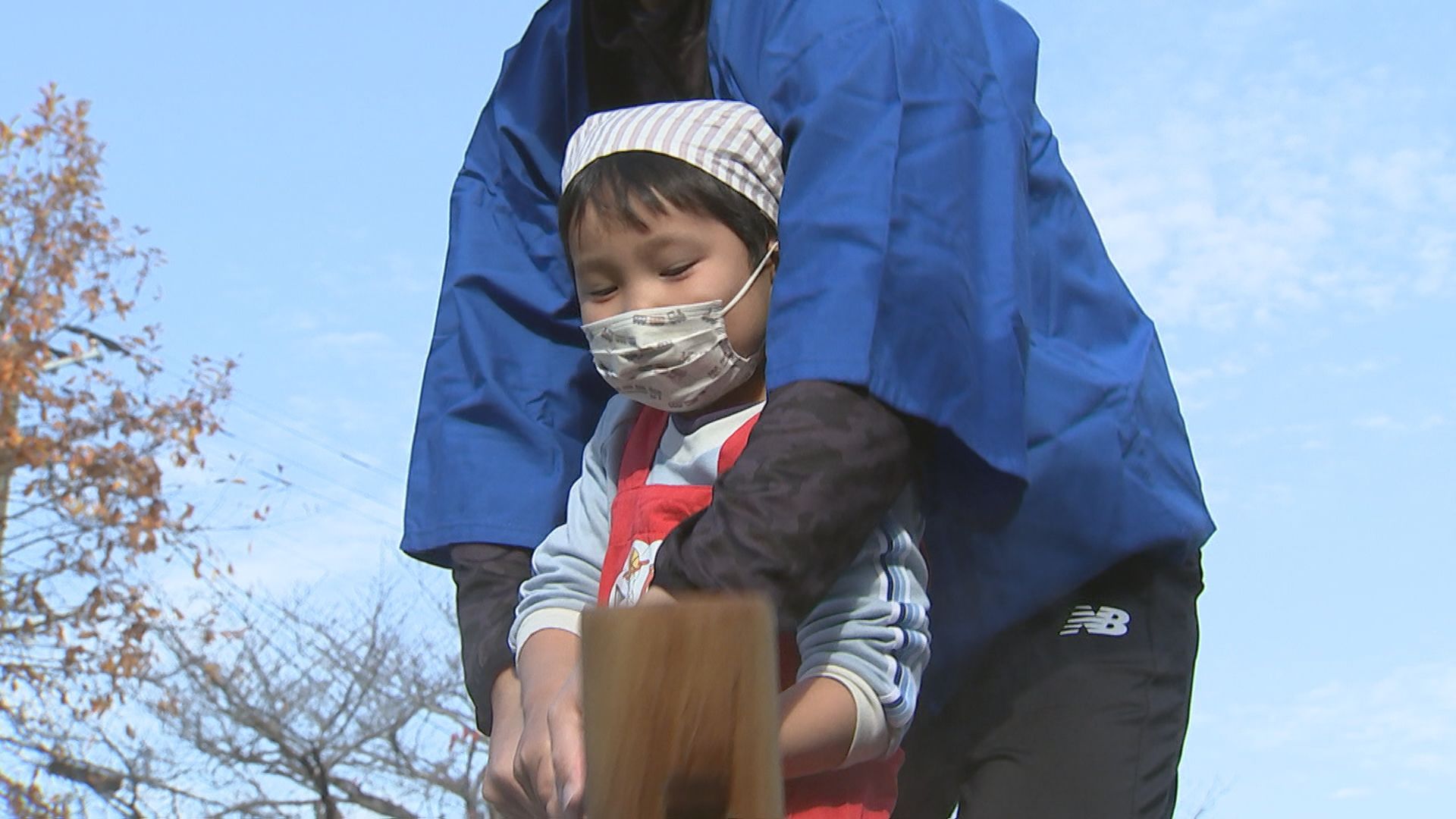 日本の伝統行事を体験してもらおうと、園が毎年この時季に行っています。19日も年長の園児たちが臼と杵を使って、一生懸命ついていました。◆園児