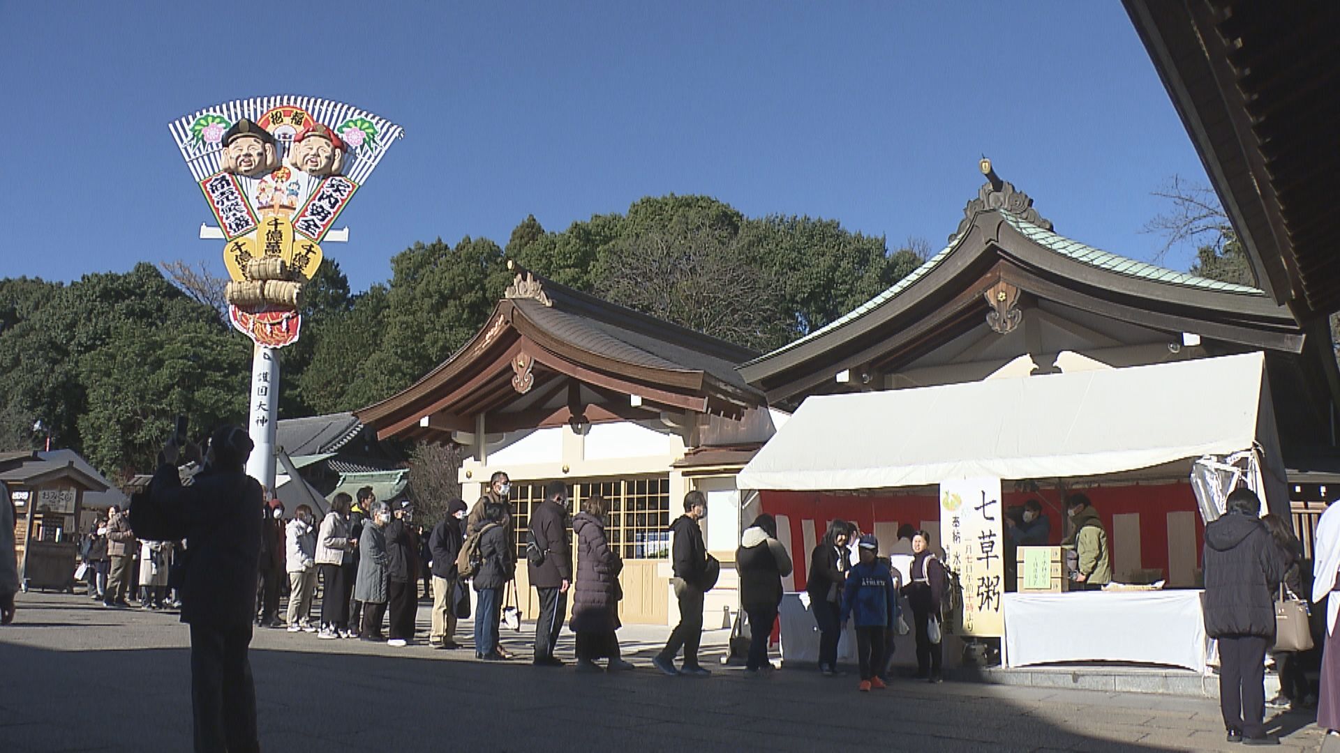 大分市の県護国神社では毎年この日に合わせて参拝客に七草がゆを振舞っていて、7日は300人分が用意されました。