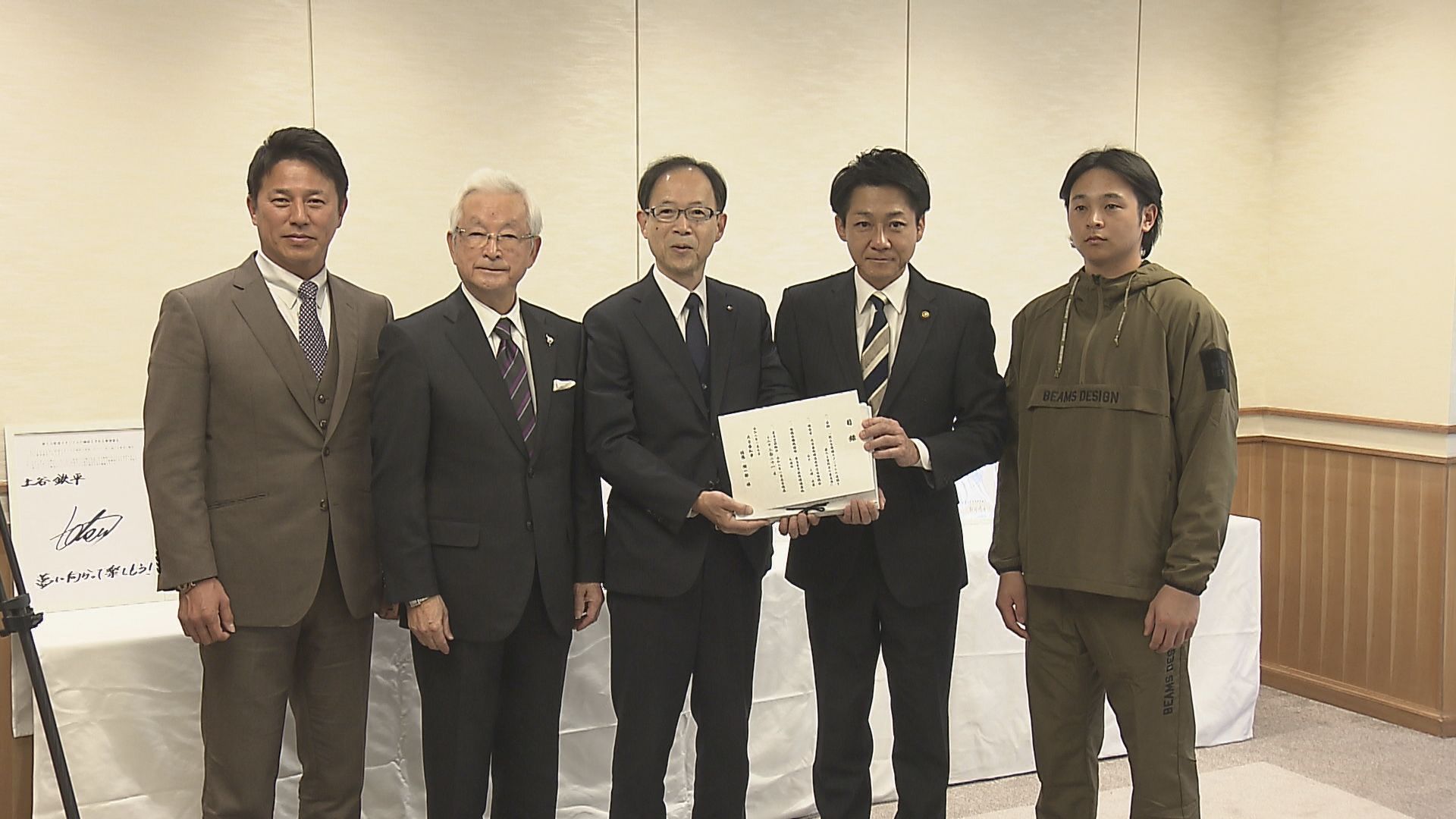 大分県内の野球関係者が7日県庁を訪れスタジアム建設を求めるおよそ12万人分の署名を提出しました。