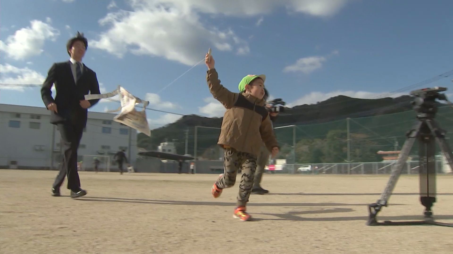 園児たちは一生懸命走って、自分たちで作ったたこを空に浮かべて喜んでいました。