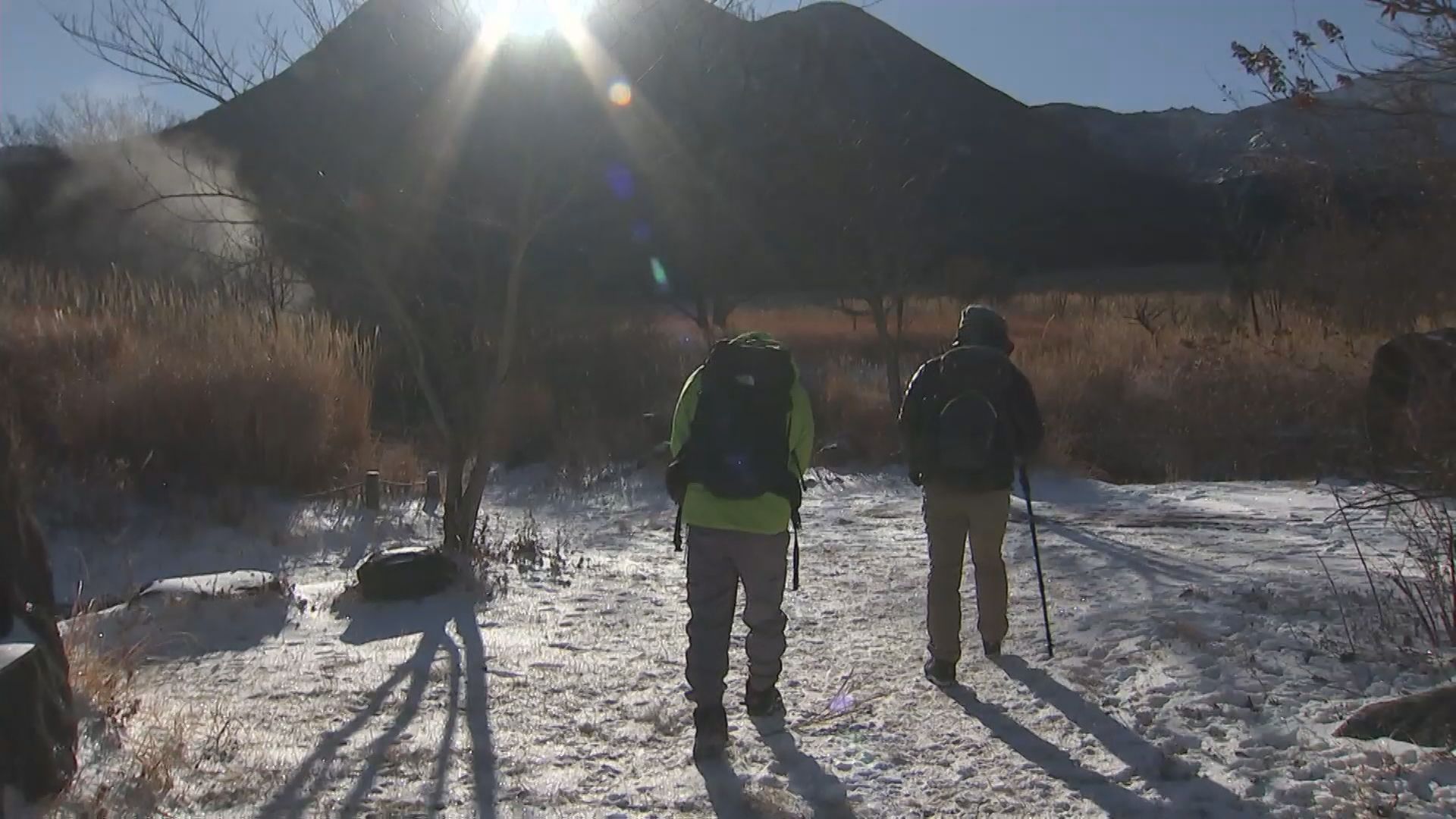 週末から流れ込んでいた強い寒気の影響で雪が降り、あたり一面が真っ白になっていました。