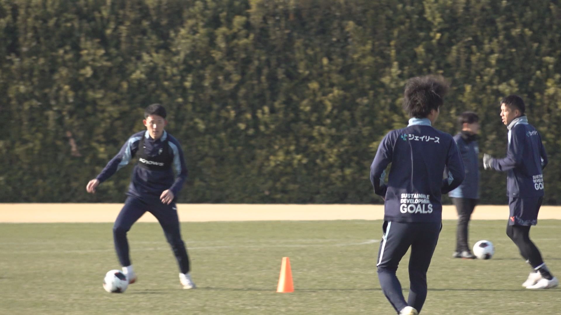 練習は午後から開始し、ウォーミングアップのあとボールを使ってパスやシュートの動きなど確認。