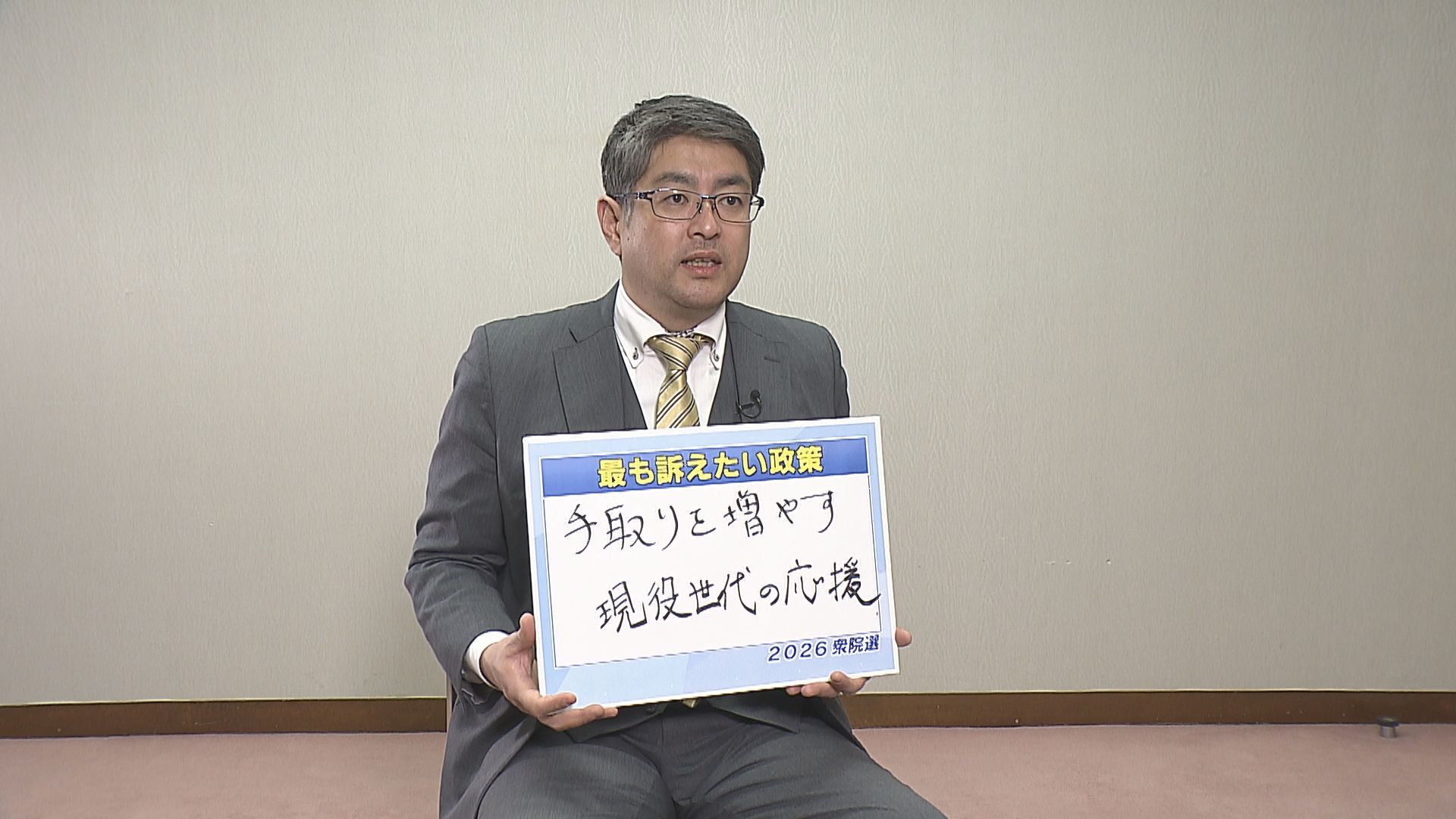 「私が最も訴えたい政策は『手取りを増やす、現役世代の応援』。働く現役世代がしっかりと次世代を育成できる、先輩世代を支えていけるような、 そんな社会経済の仕組み作りを整えていきたい」