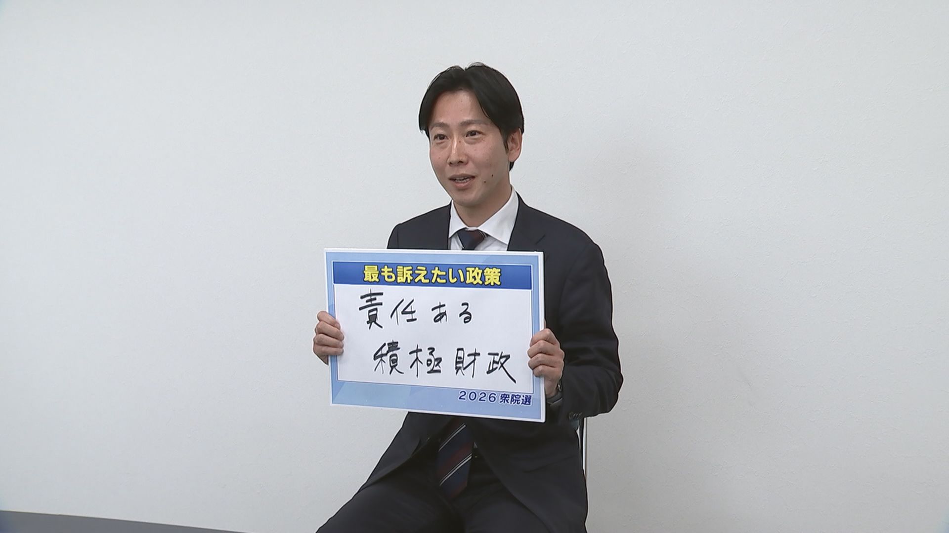 「私が最も訴えたい政策は『責任ある積極財政』。まずは減税で一人一人の暮らしをしっかりと豊かにすることによって、経済を大きく成長させていく。そして、未来への投資として、成長する分野に積極的で大胆な投資を行っていく」