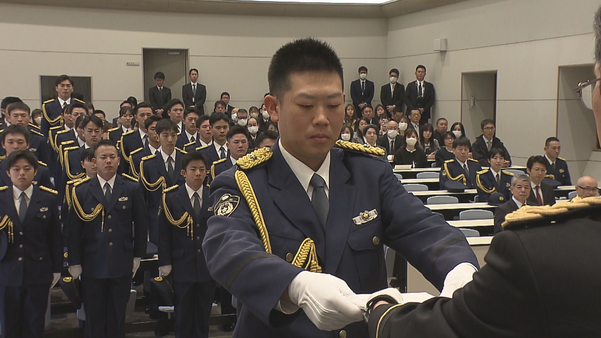 式では卒業生の代表に卒業証書が手渡された後、県警の平松伸二本部長が「若さを武器に、県民のために全力を尽くしてください」と訓示しました。これに対し、丸井亜海巡査が決意を述べました。