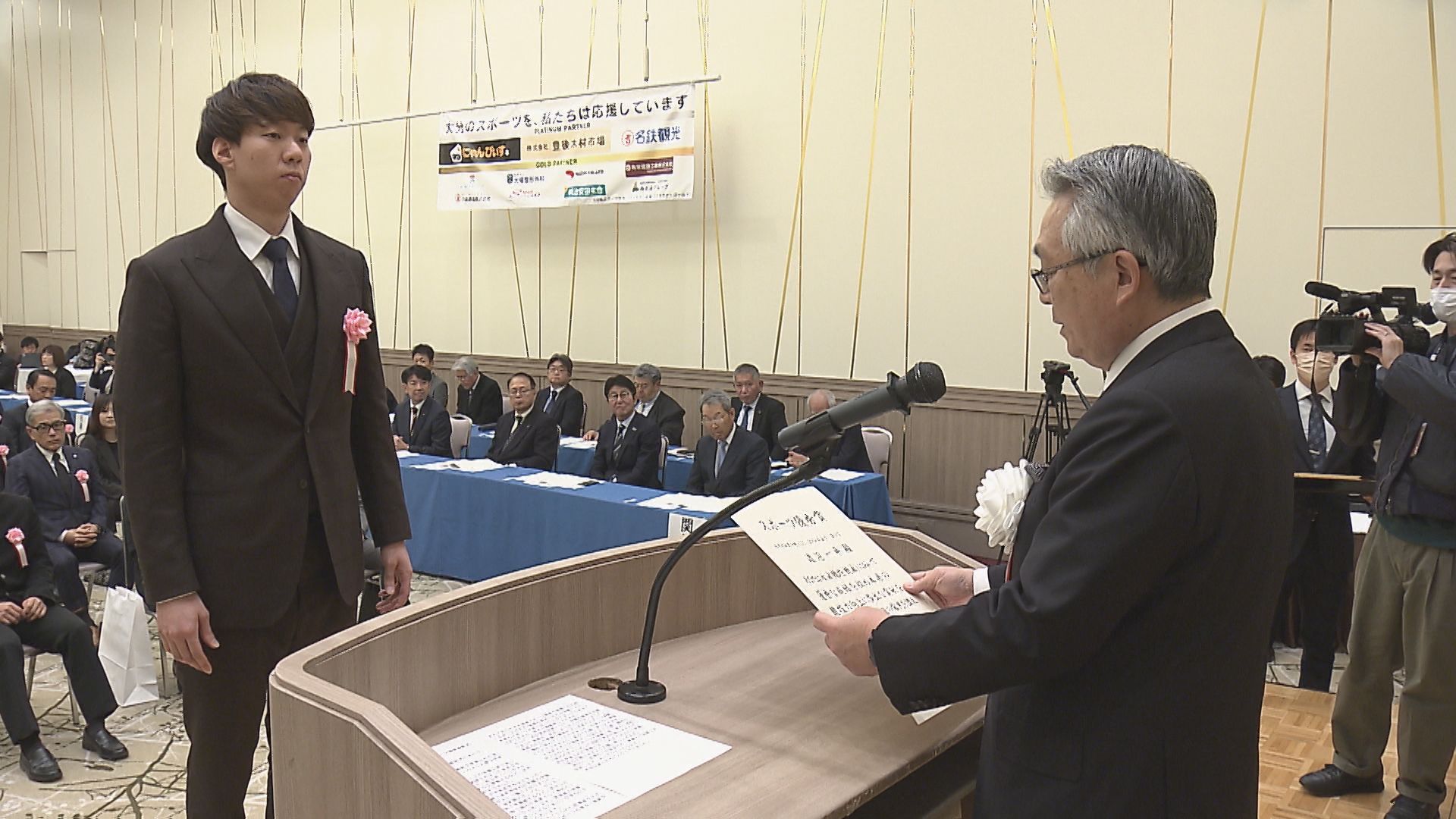 式では、受賞者を代表して県サッカー協会の二階堂雅士会長が「今後も大分のスポーツの発展を願っています」と挨拶しました。