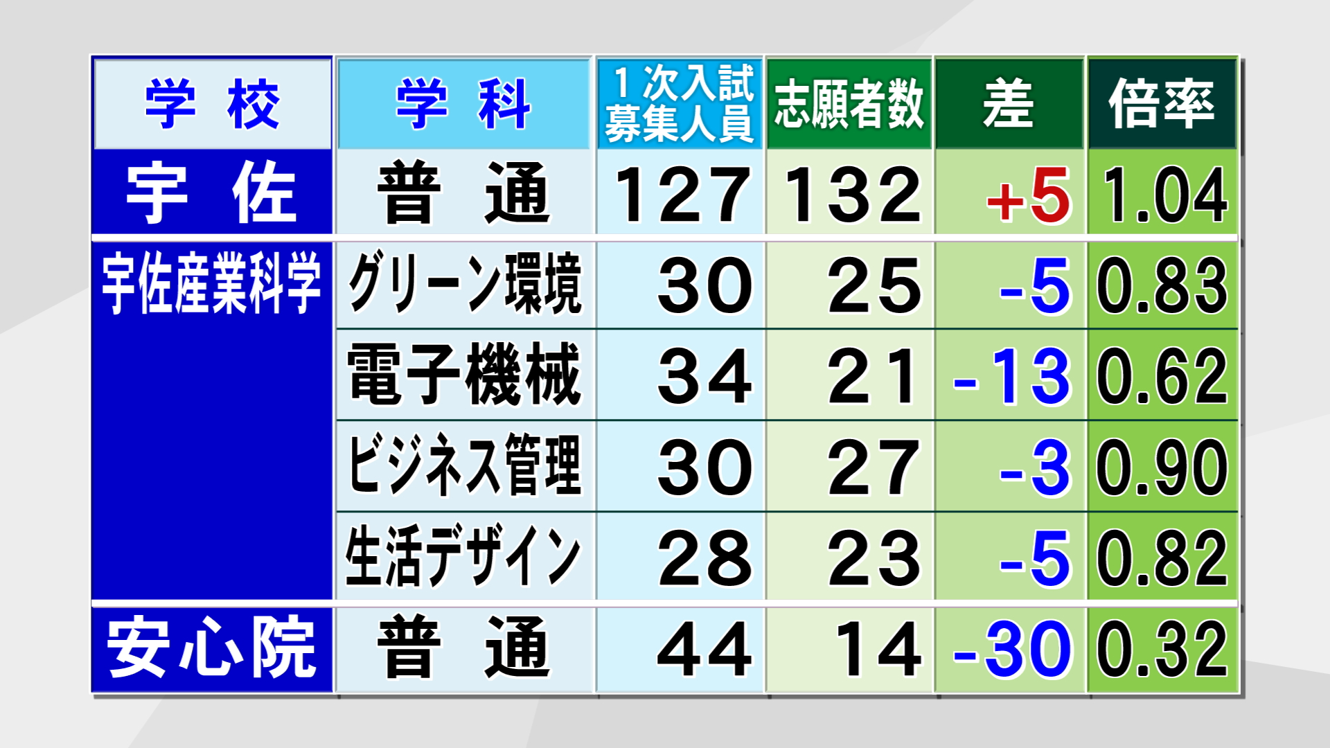 宇佐は127人の募集に対し志願した人は132人です。