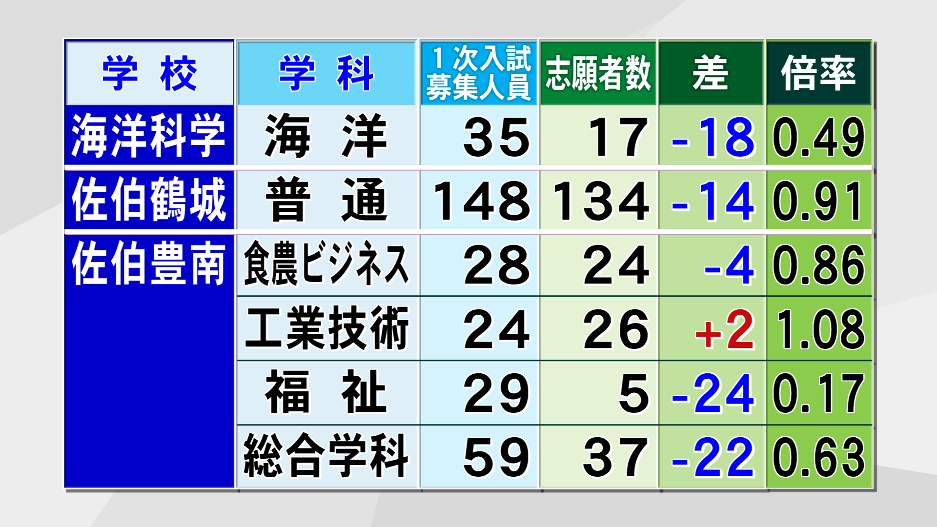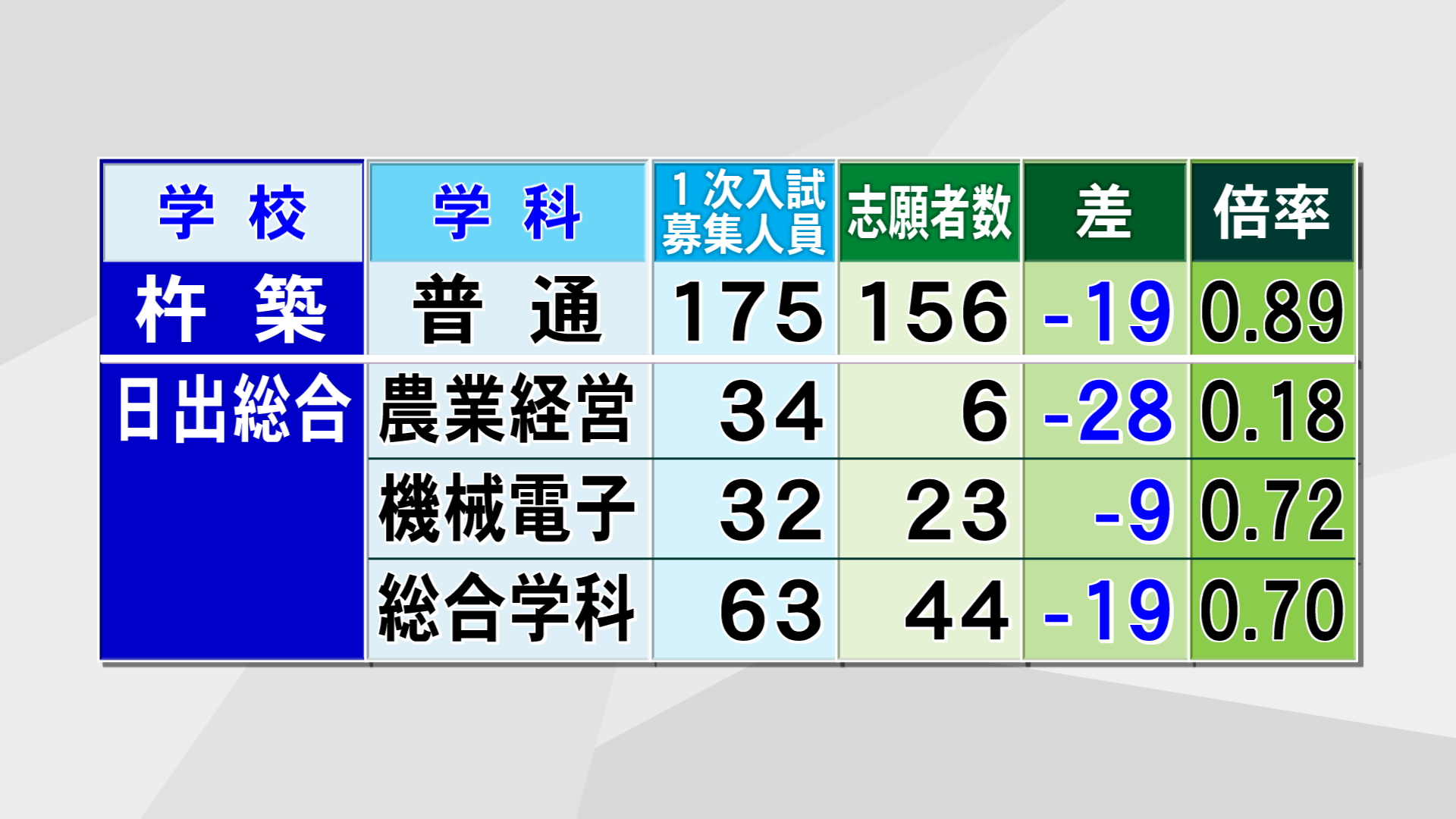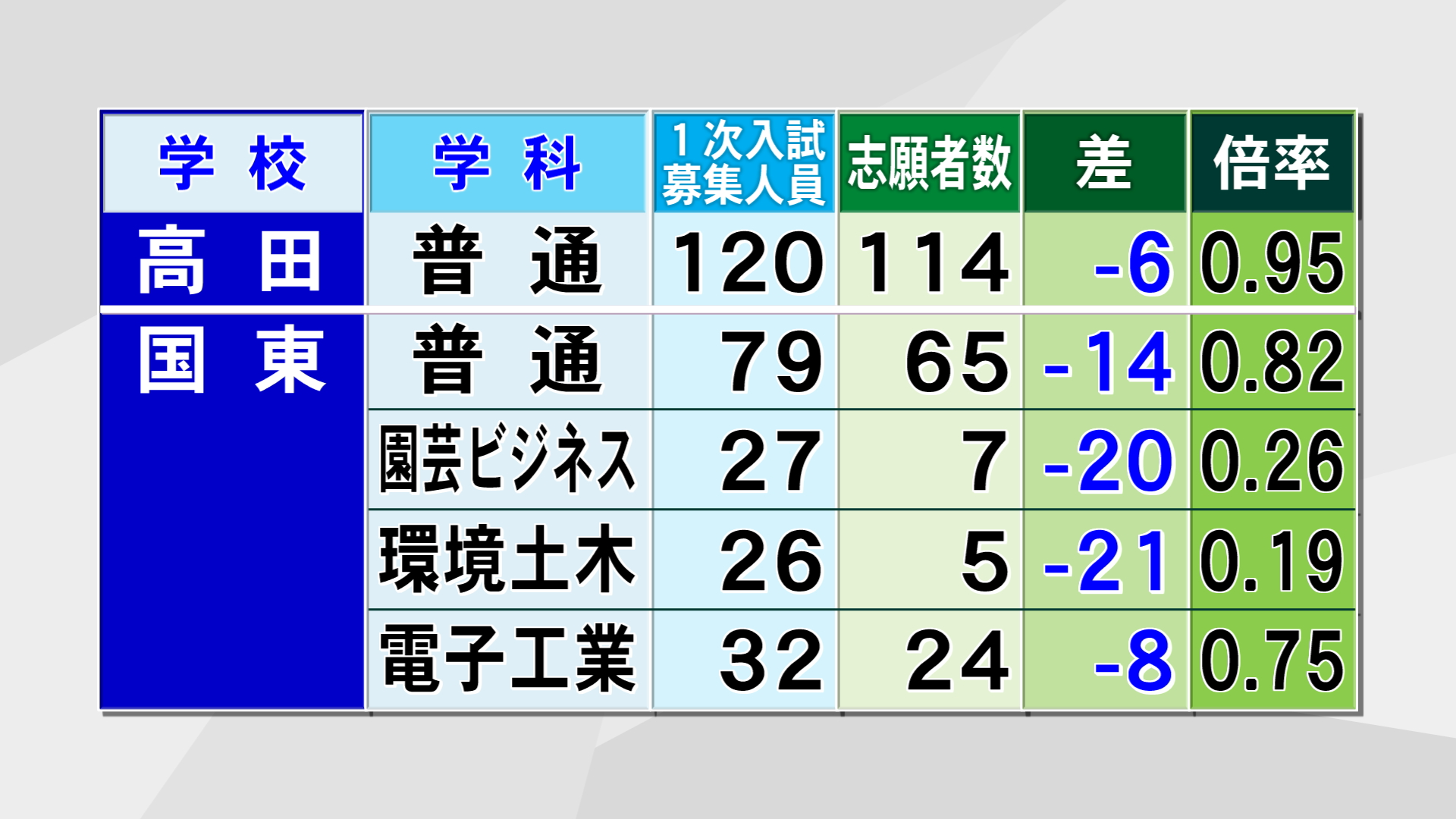 それでは各高校の学科別の志願状況をお伝えします。
