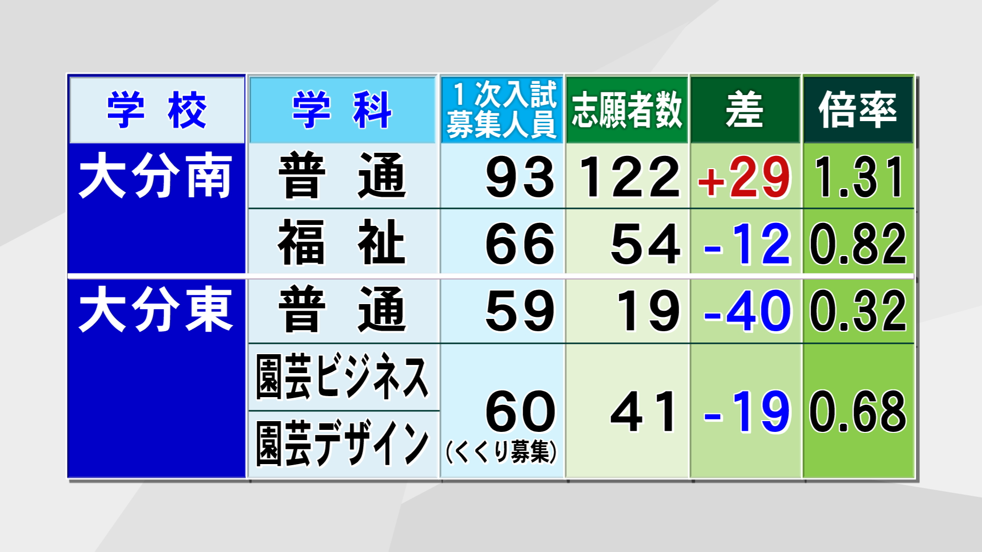 大分南の普通科は93人の募集に対し122人が志願しています。