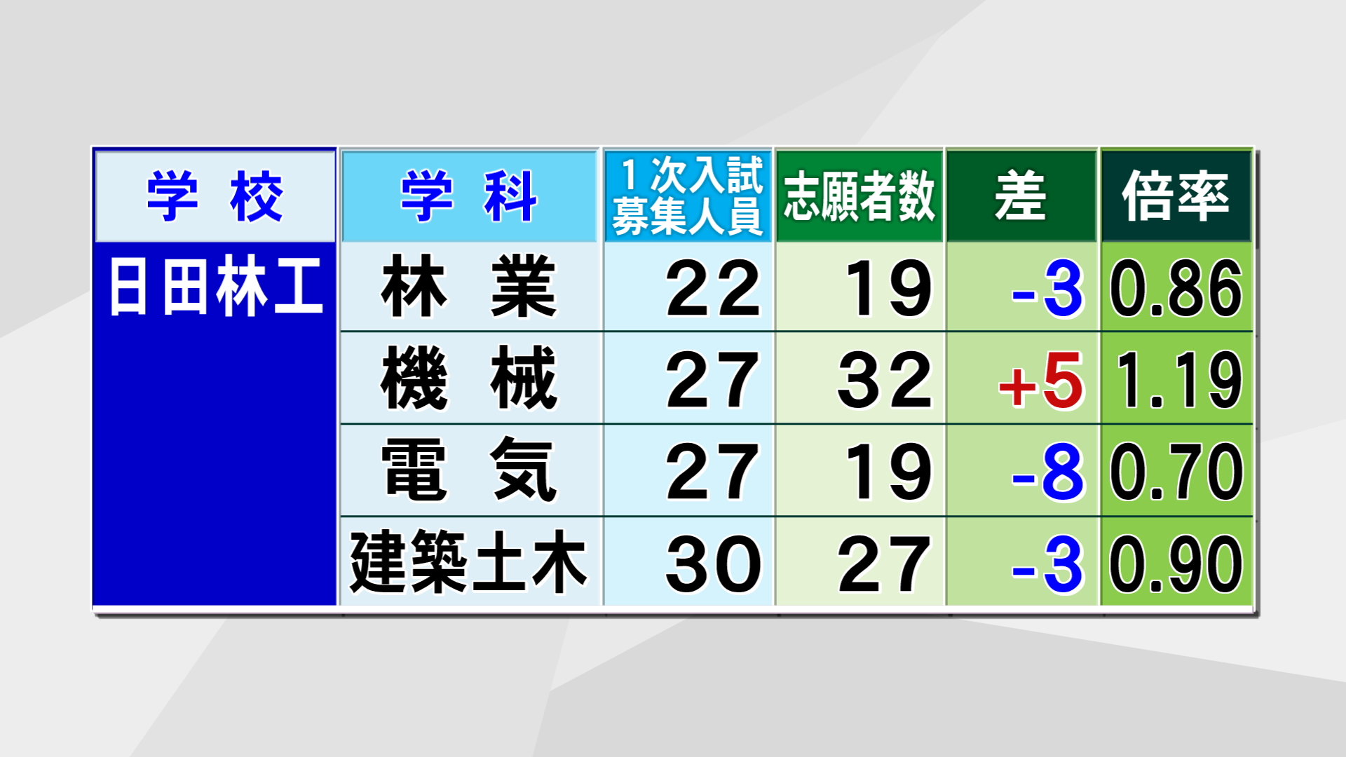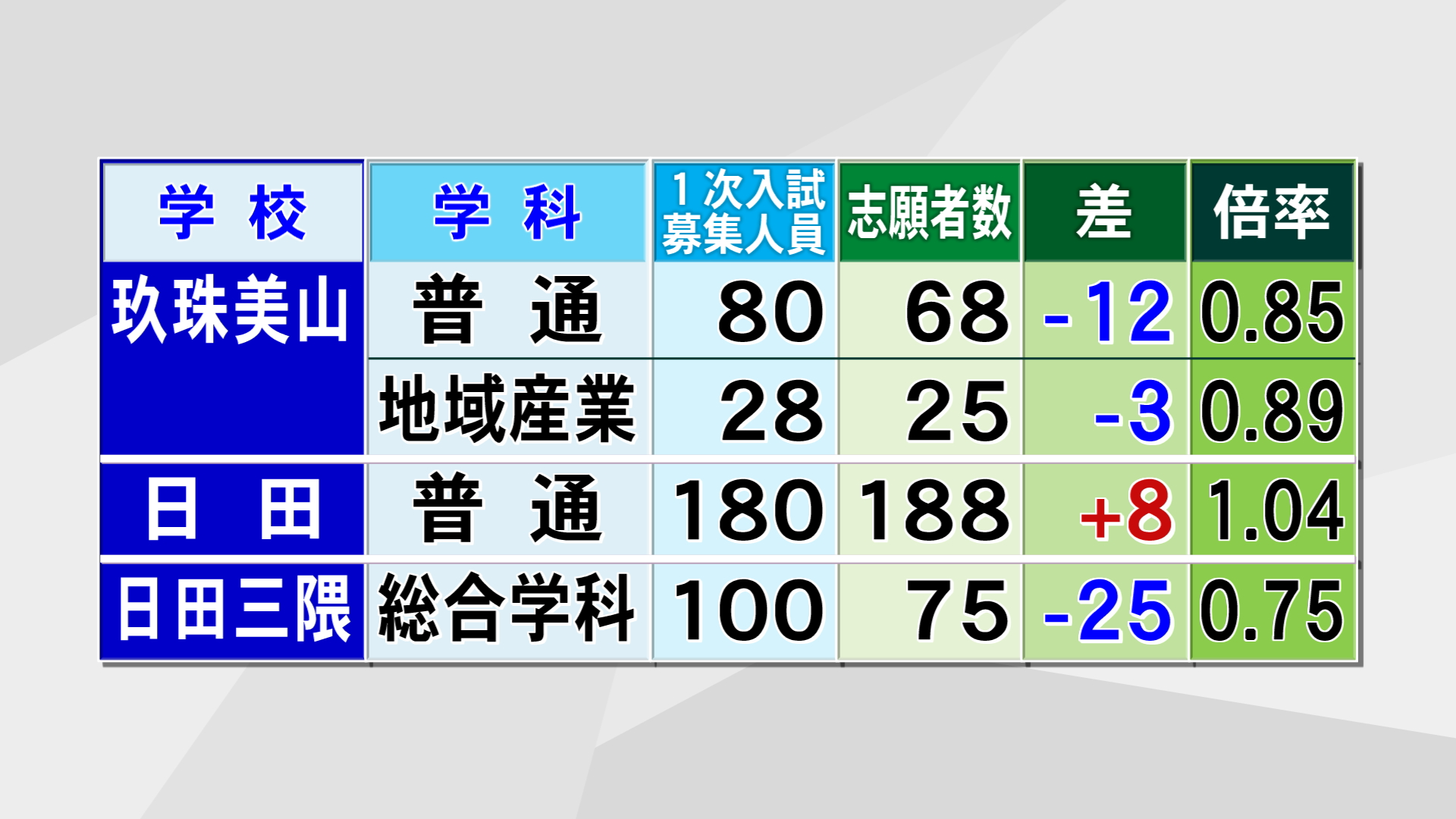 日田は1.04倍、日田三隈は募集人員に達していません。