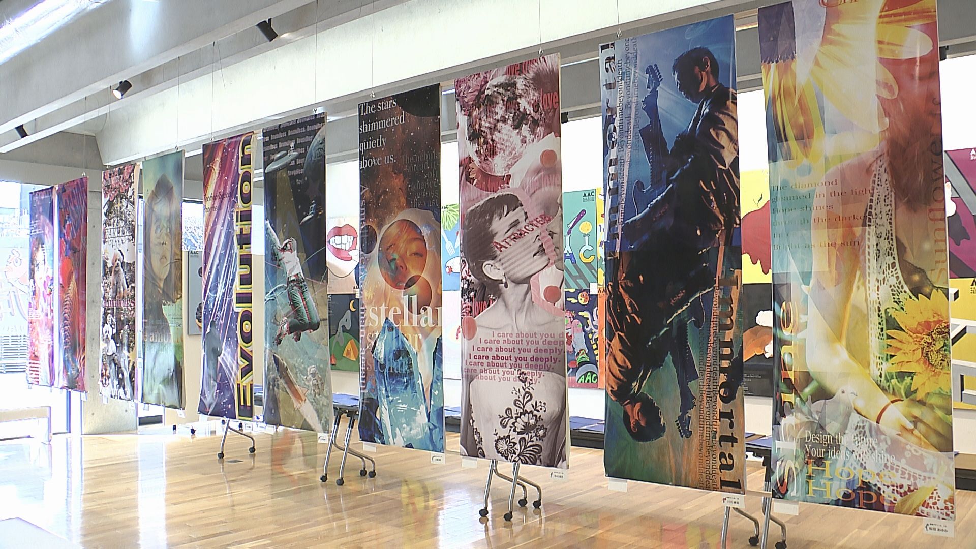 この作品展は大分市の鶴崎工業高校・産業デザイン科の生徒たちが授業などで制作した作品の発表の場として毎年開催されています。