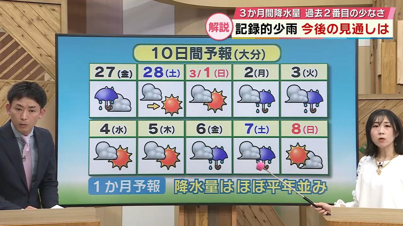 大分県内では2025年10月ごろから雨の少ない状態が続いていました。11月から2026年1月にかけての降水量は26ミリと、3か月間の降水量としては過去2番目に少ない記録となりました。