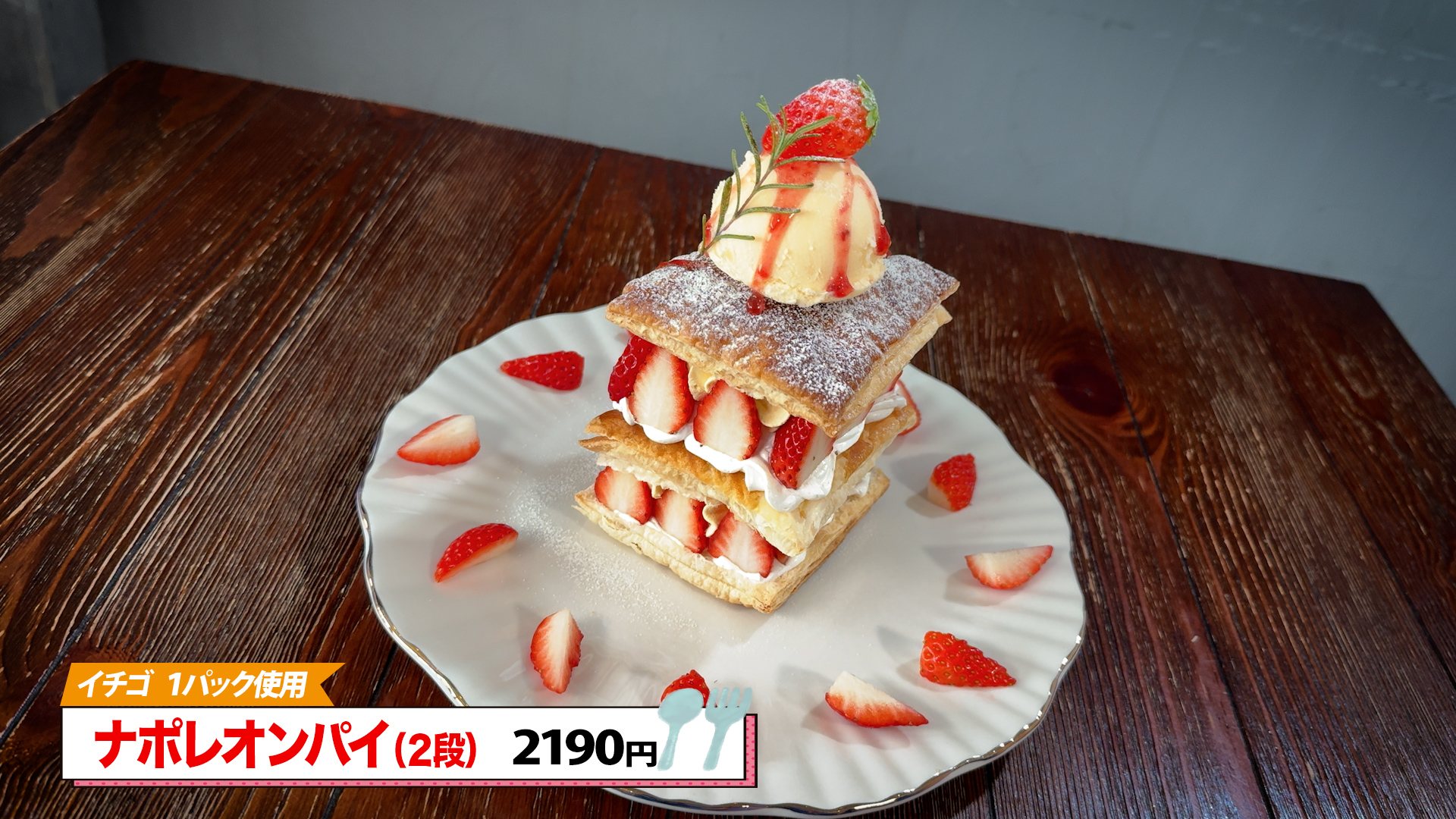 さらに驚きは続きます。続いて登場したのは、ナポレオンパイ。それも2段。さくさくのパイ生地にカスタードクリームやいちごなどを重ねたフランス発祥のスイーツです。