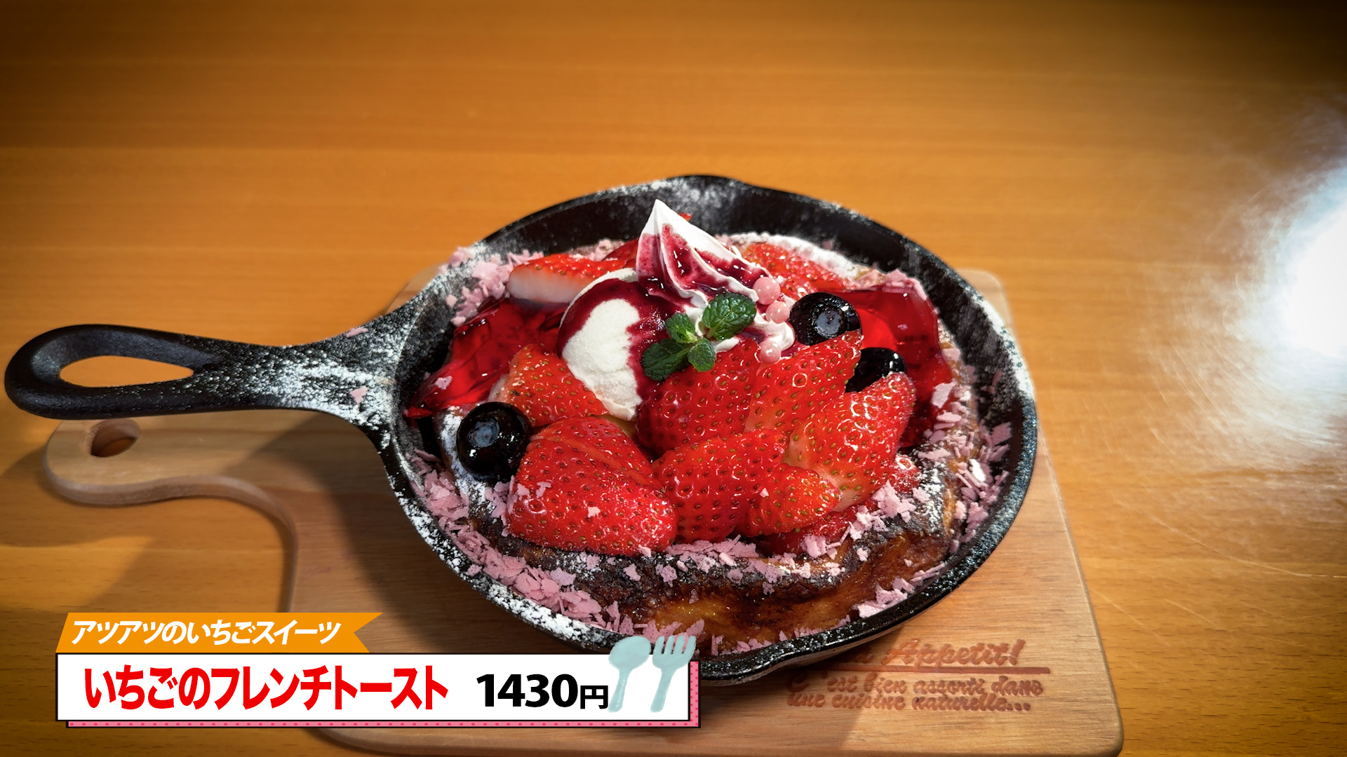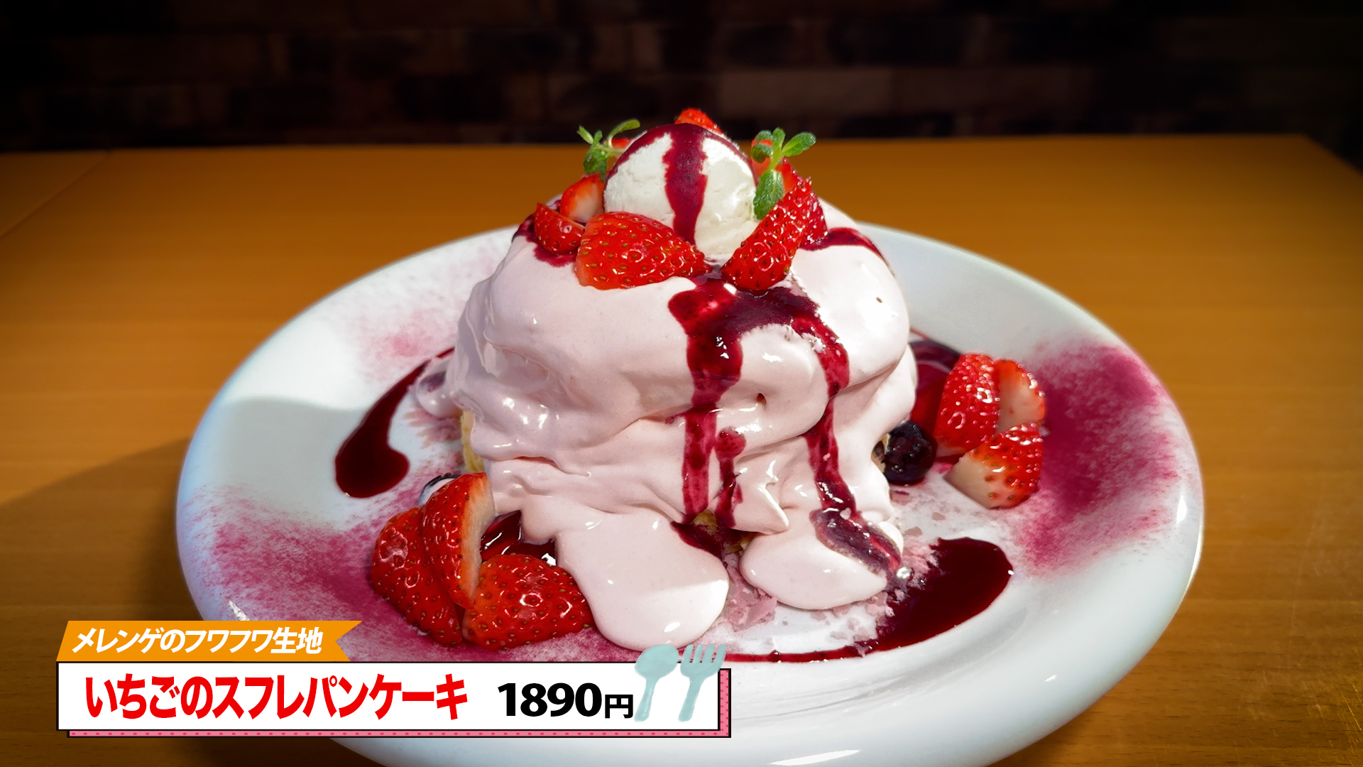 「ふわふわ通り越して、なんかシュワシュワみたいな、もう無重力」と彩花リポーターのコメントもなんだかふわふわ。いちご味の生クリームが生地を覆い、甘酸っぱいソースが全体の味をまとめ上げています。「ここに冷たいバニラアイスが合うー!感動です」と絶賛する通り、温かいパンケーキと冷たいアイスの温度差が絶妙なハーモニーを奏でています。