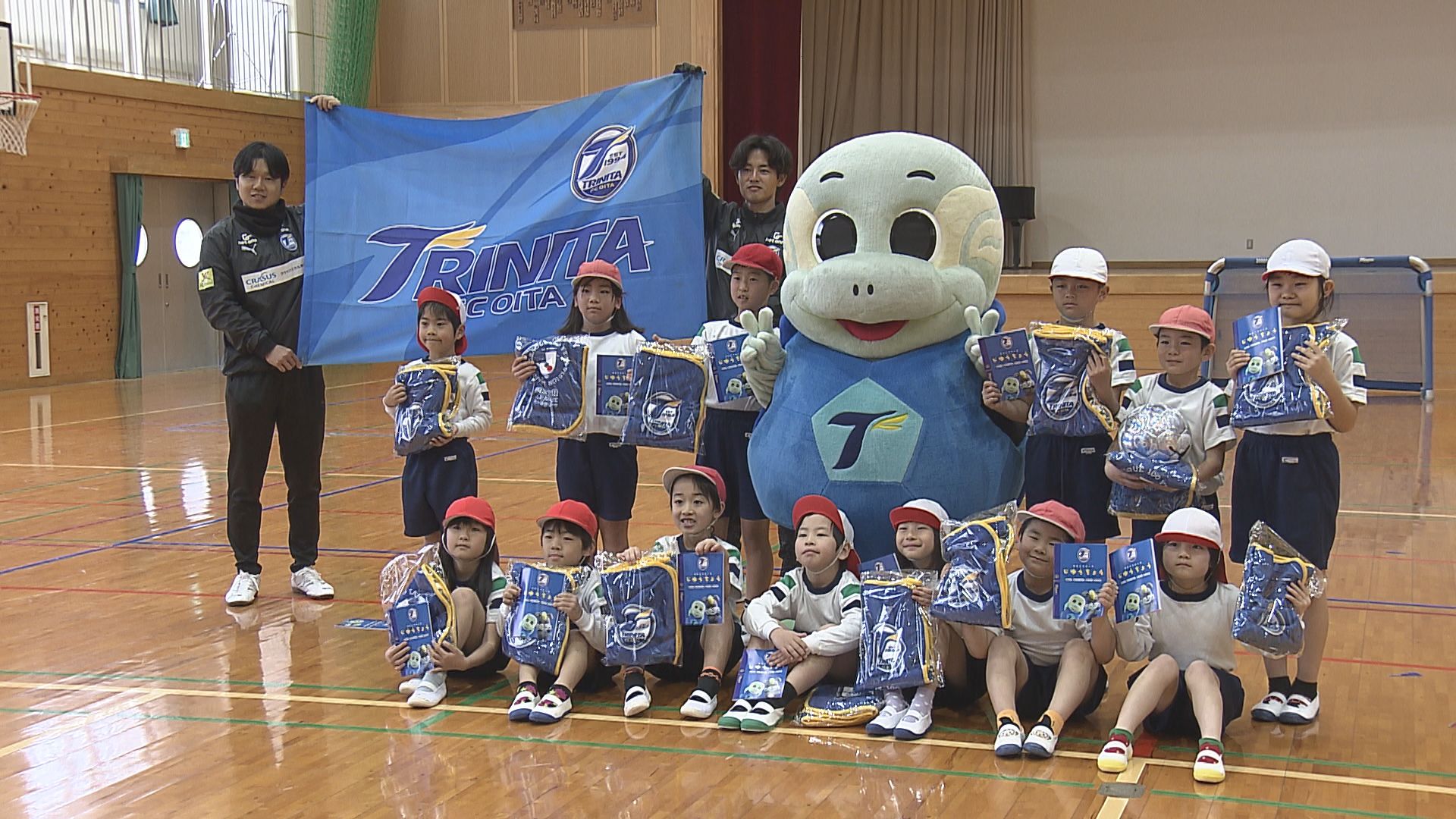 選手や監督のサインが入ったサッカーボールなどが子供たちに贈られました。