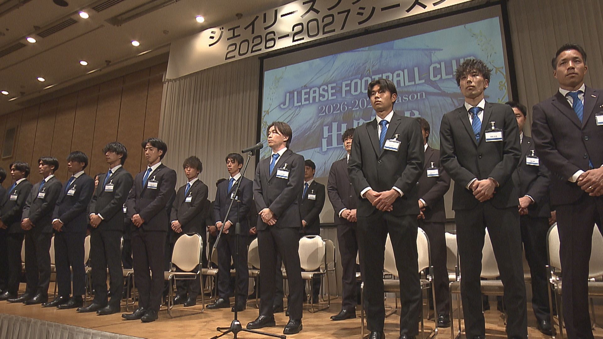 アマチュア最高峰のJFLに昇格したジェイリースFC。1日の出陣式には、選手やスタッフなど関係者あわせておよそ100人が参加しました。