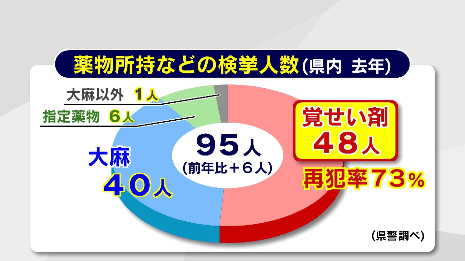 県警によりますと2025年、県内で薬物の所持や使用などで検挙されたのは95人と前の年より6人増えました。