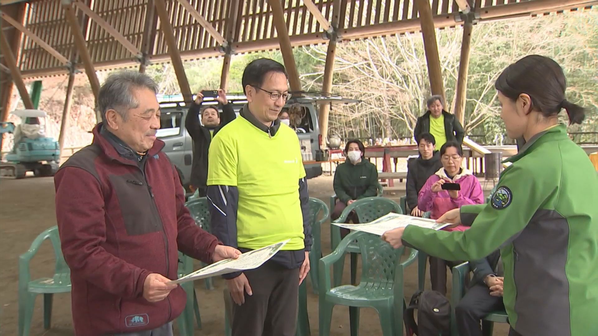 式のあと、参加者はソラシドの森の生き物をスマートフォンで撮影。種類や珍しさなどが判定できるというAIアプリを利用した調査を行っていました。