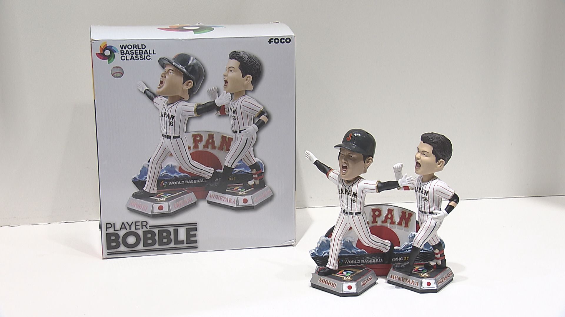 こちらは、前回のWBCの準決勝で劇的なサヨナラタイムリーを放った村上選手が大谷選手と喜び合うシーンを再現したもので、その値段はなんと33万円です。
