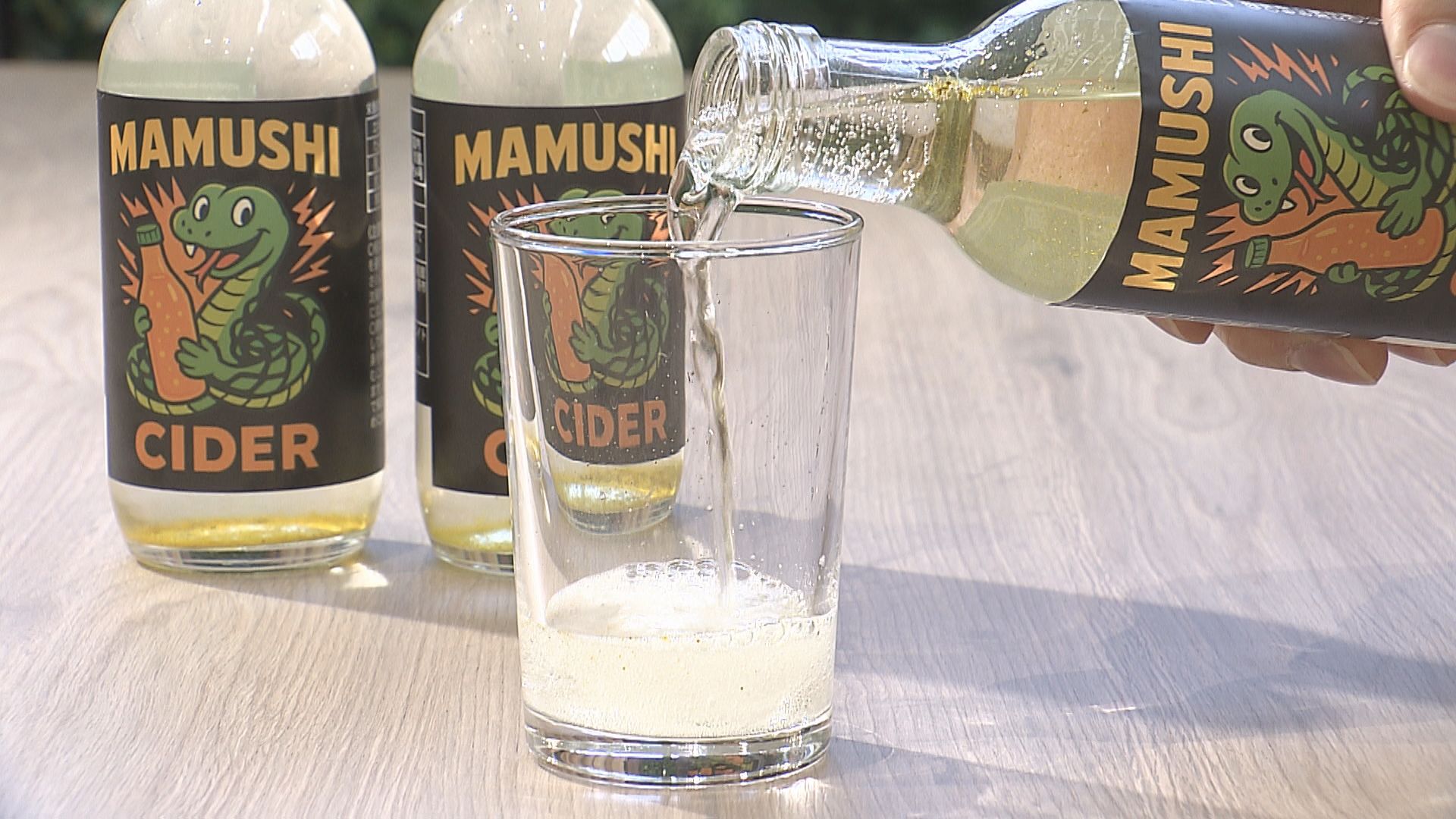 豊後大野市清川町の道の駅きよかわで販売が始まったマムシサイダー。