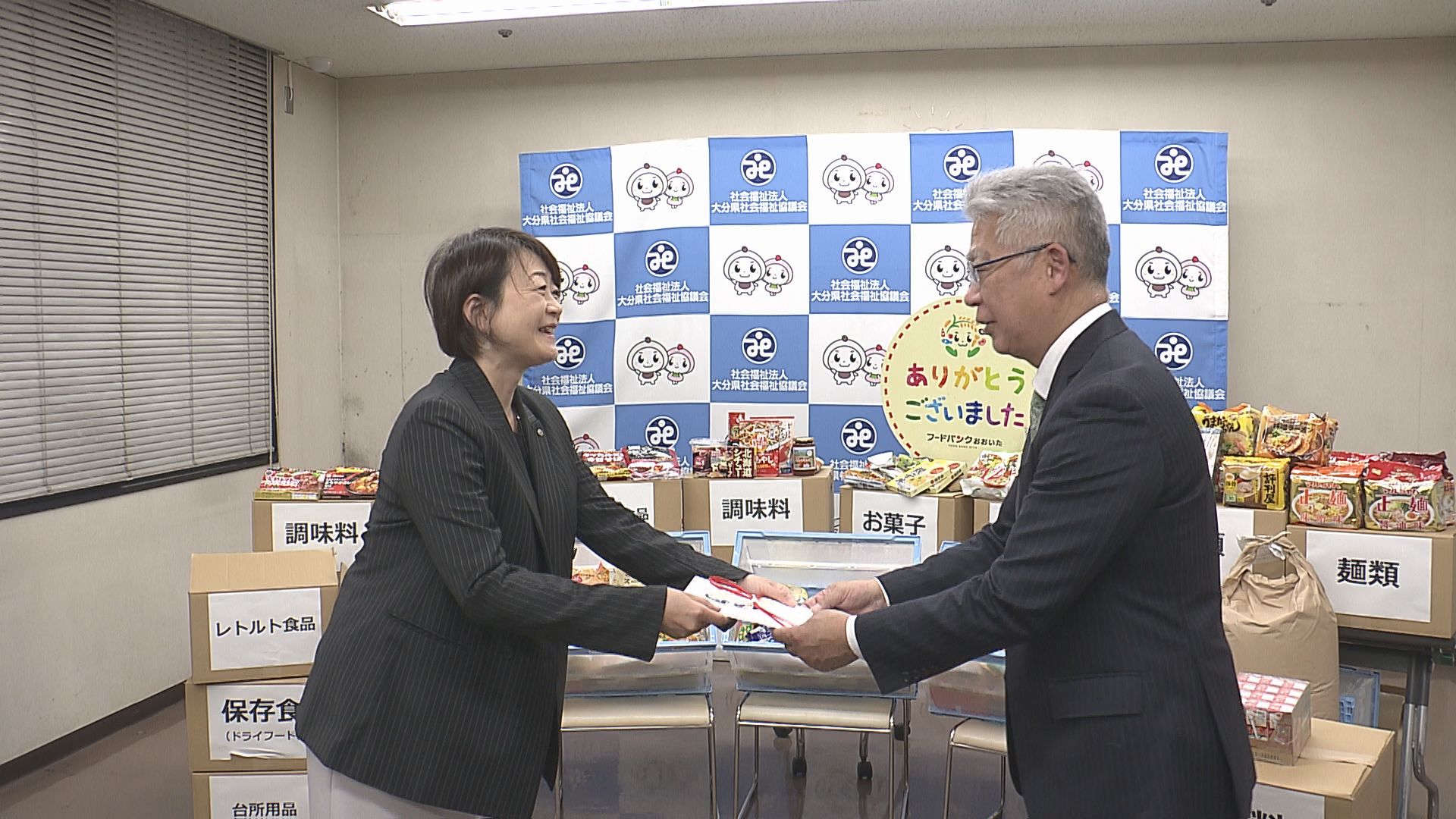 家庭で余った食品を必要な人に届ける活動、フードドライブに取り組むNTT西日本大分支店が、大分県社会福祉協議会に集めた食料品を寄贈しました。