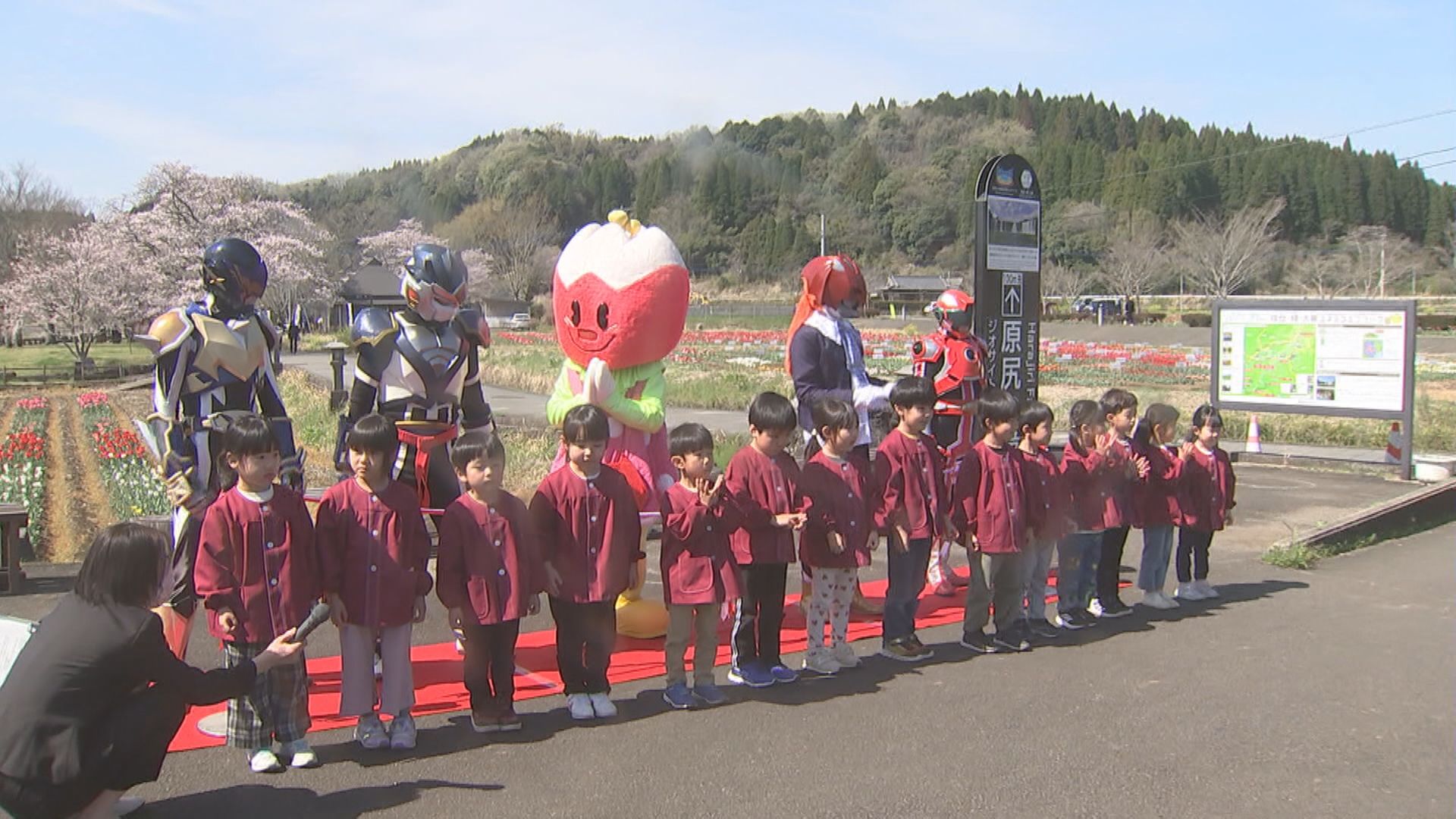 地元のこども園の園児たちが元気な歌声を披露して開幕したチューリップフェスタ。