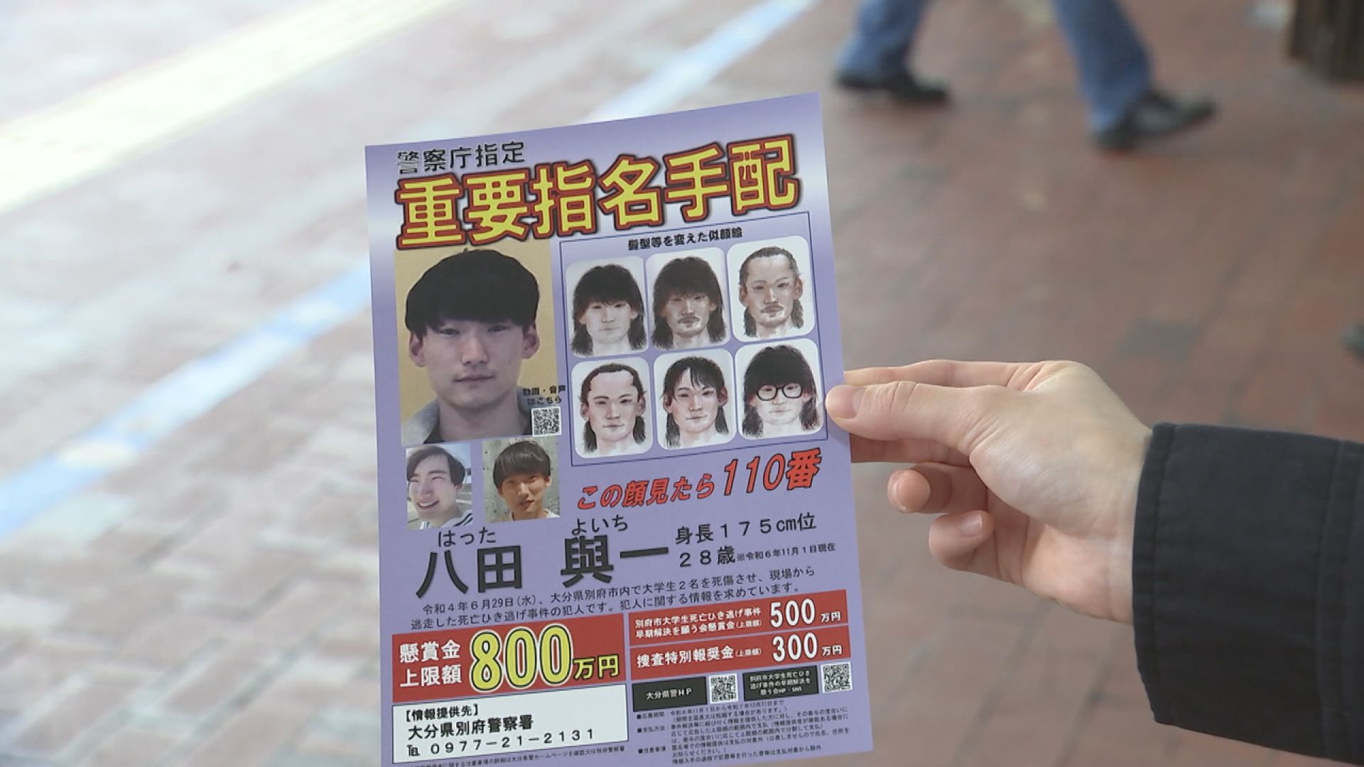 八田與一容疑者が殺人などの疑いで重要指名手配されている大分県別府市で起きたひき逃げ事件。