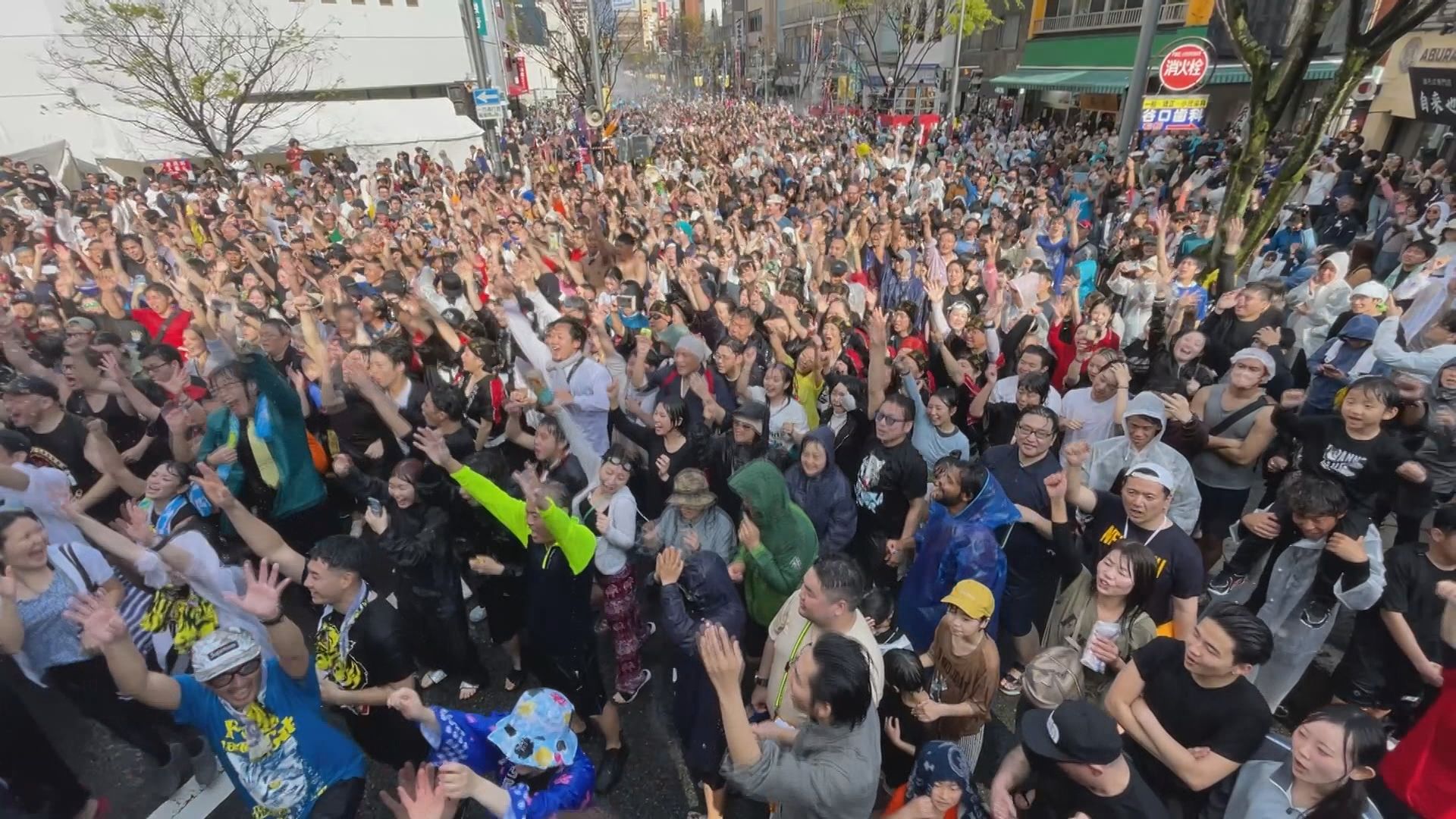 名物の「湯ぶっかけまつり」が行われ、温泉をかけあう参加者たちで会場は盛り上がりを見せていました。