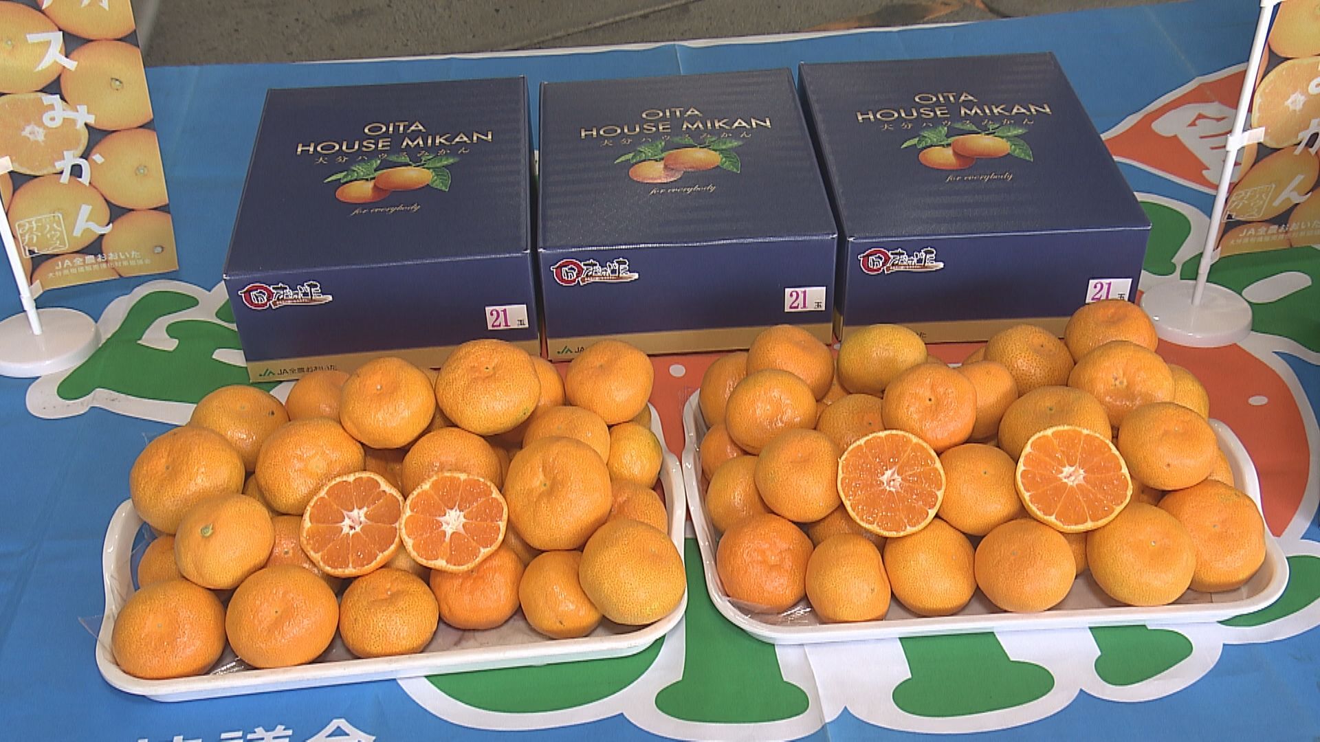 大分県産のハウスみかんの初競りが、20日朝、大分市の市場で行われました。