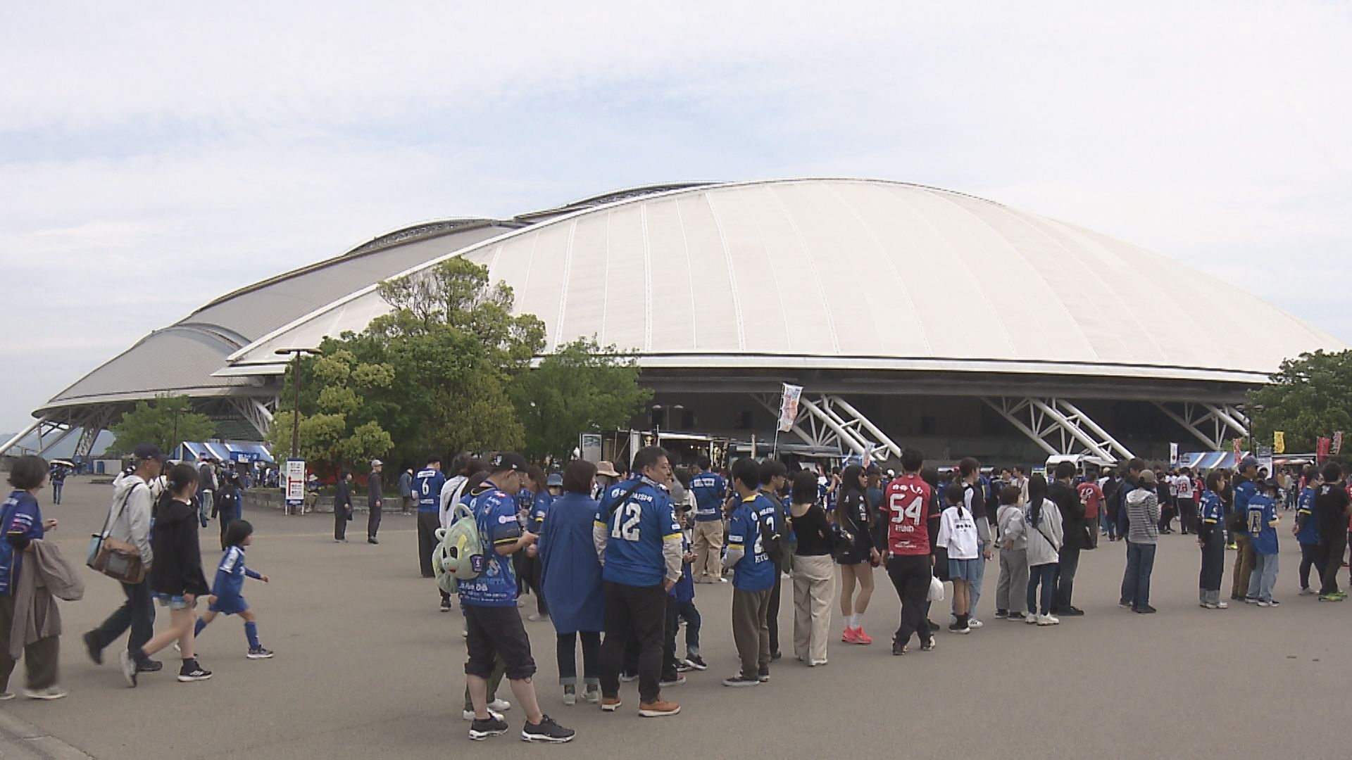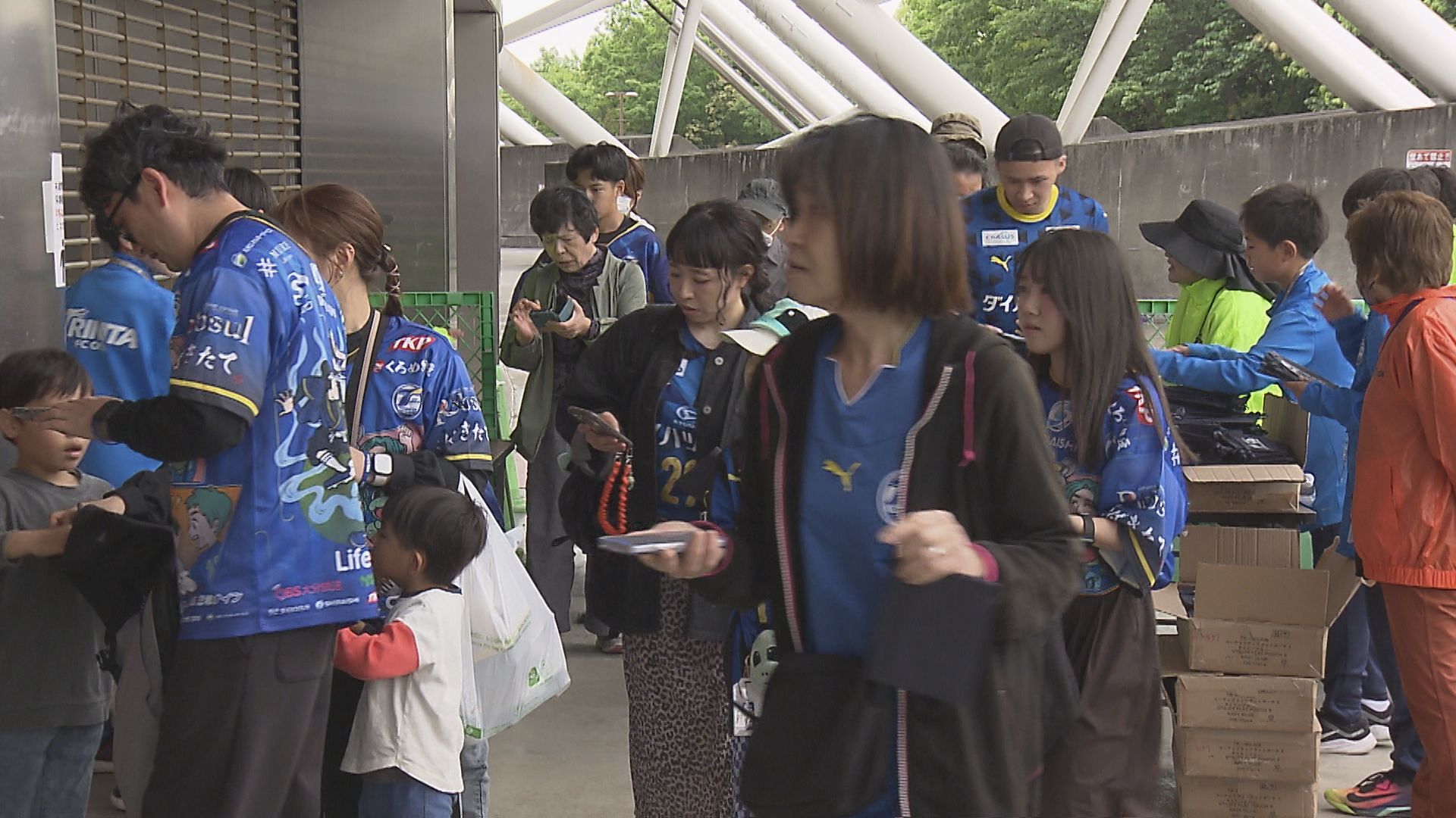 「祝日のきょう、多くの子供たちが熊本との九州ダービーを楽しみに会場を訪れている」