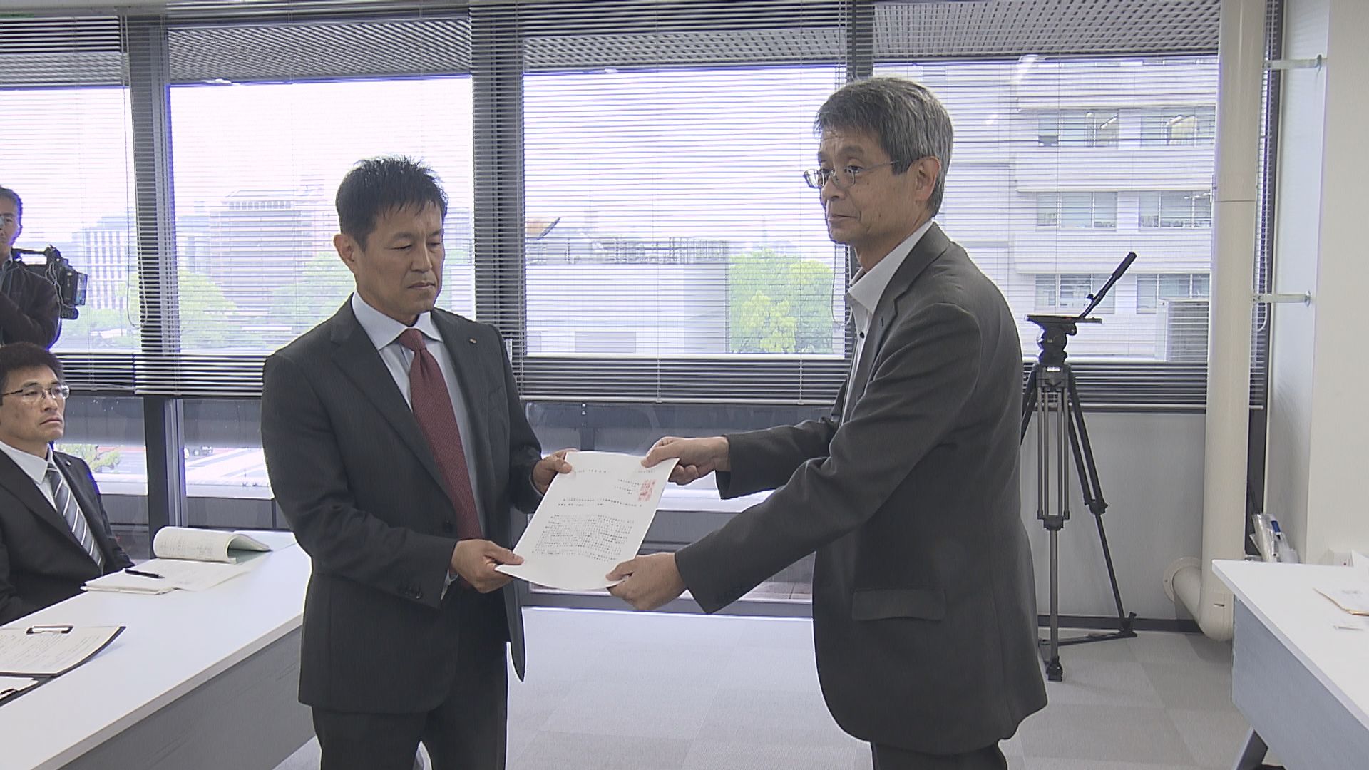 この事故を受け30日は県平和運動センターと立憲民主党県連が県庁を訪れ県に対し要請書を手渡しました。