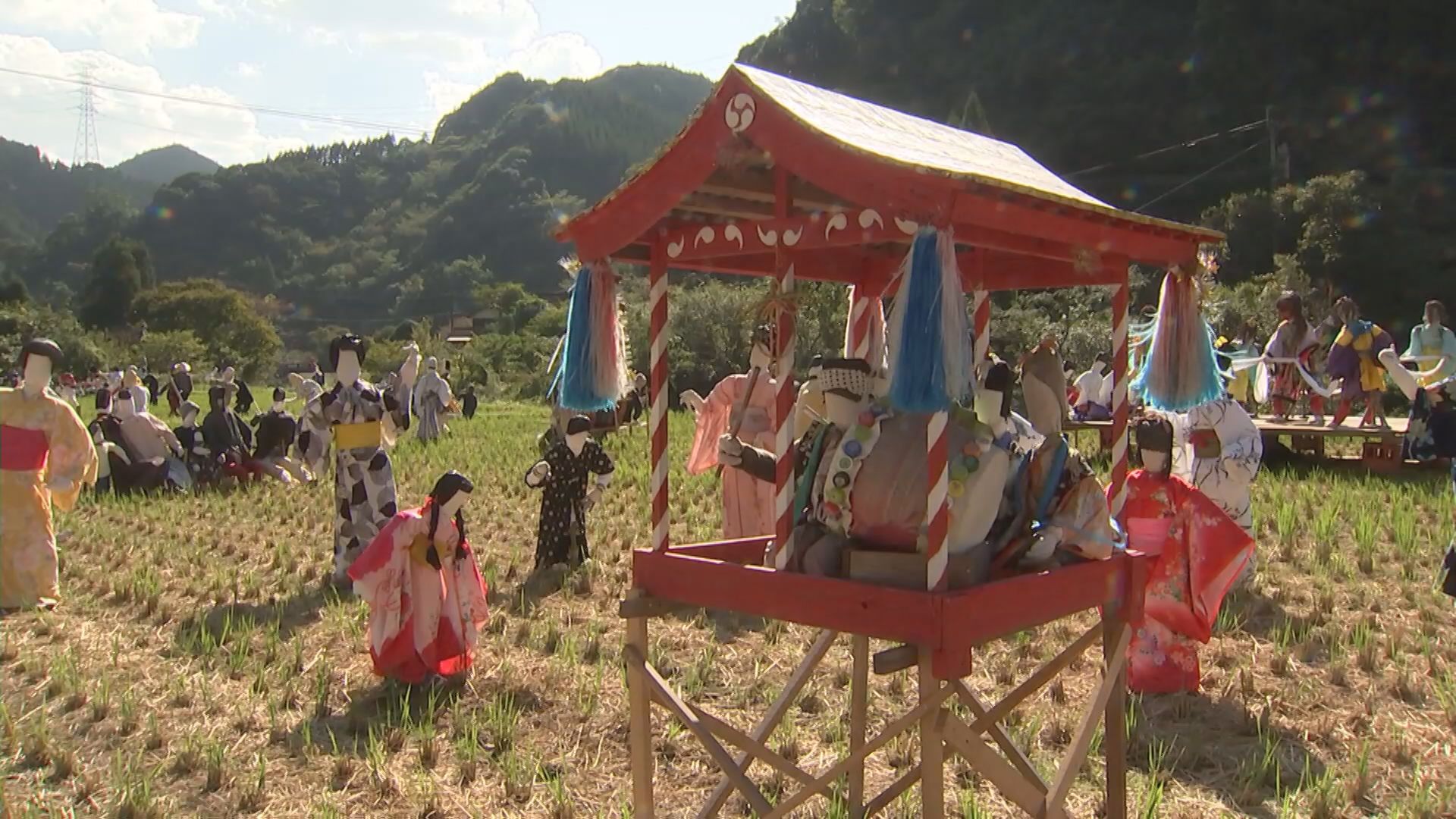 中津市山国町で紅葉とユニークな〝かかし〟巡り 21日まで